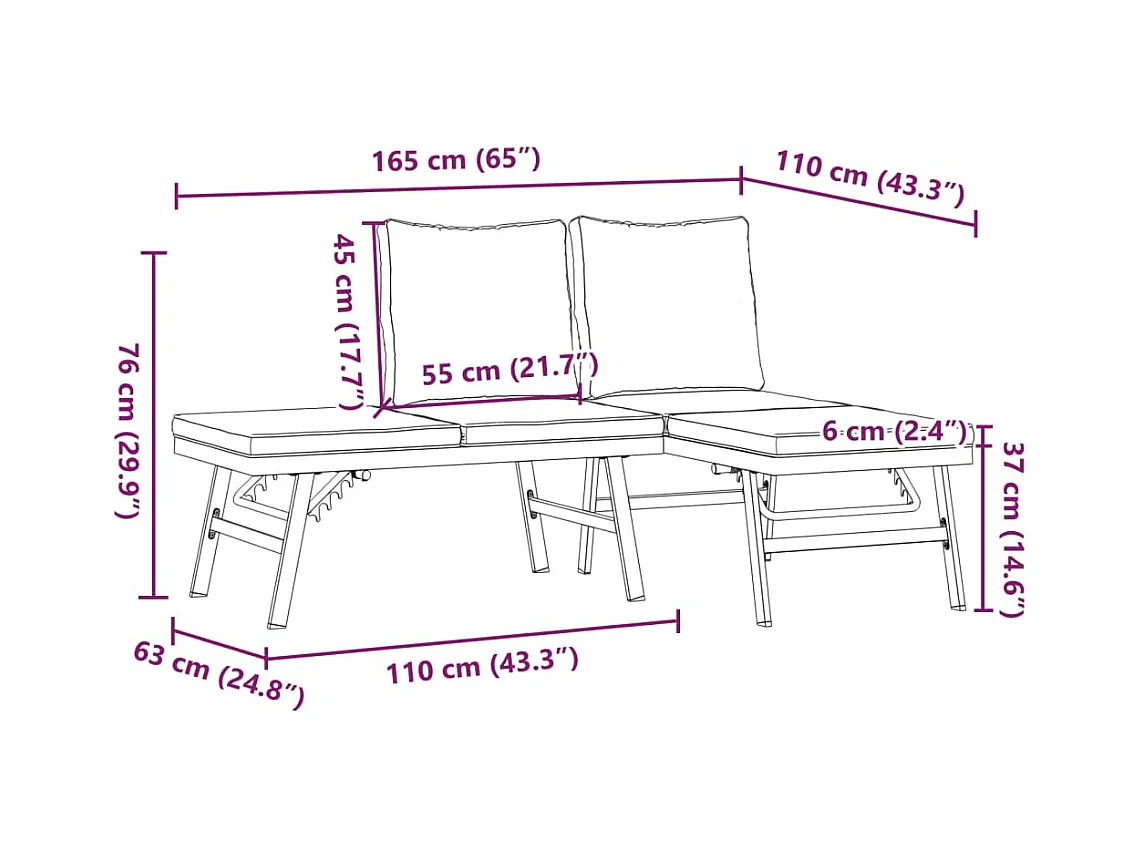 Tuinbanken met kussens set van 2 gepoedercoat staal