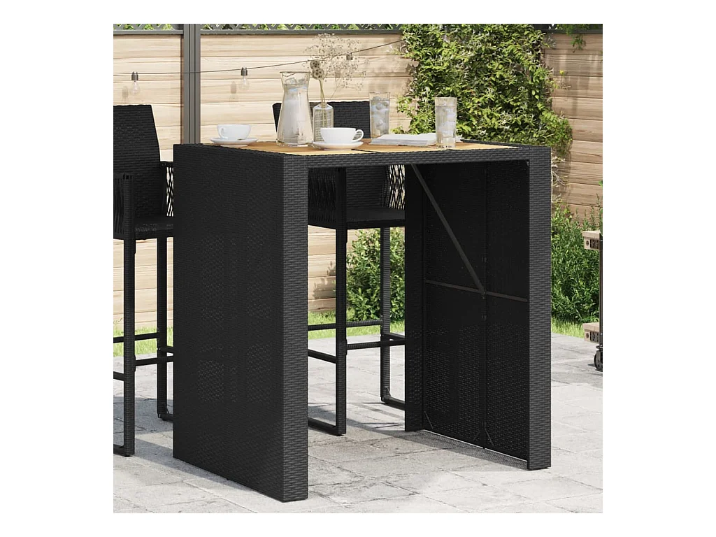 Tuinbartafel acaciahouten blad 105x80x110 cm poly rattan zwart