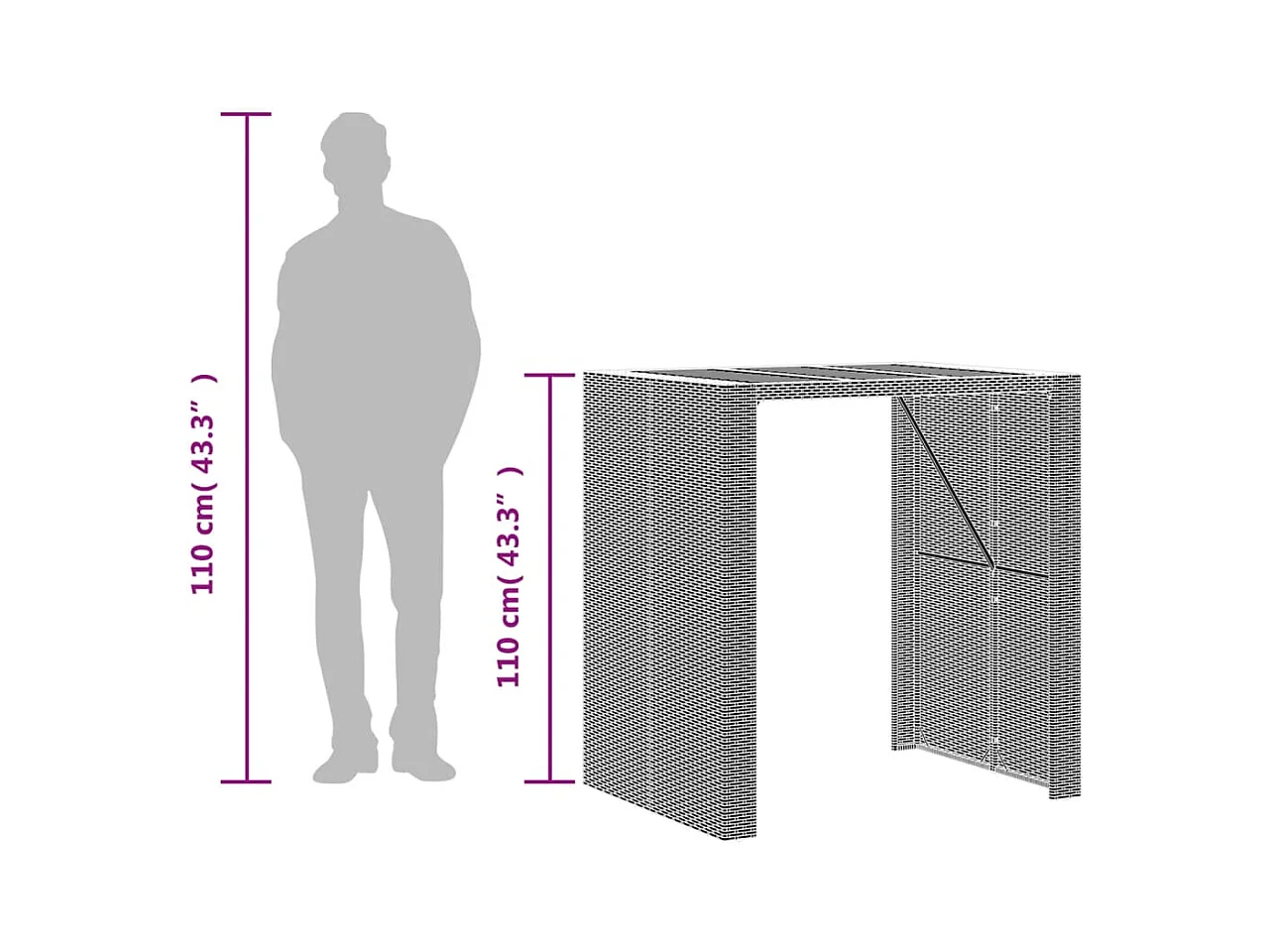 Tuinbartafel 120x55x110 cm poly rattan zwart