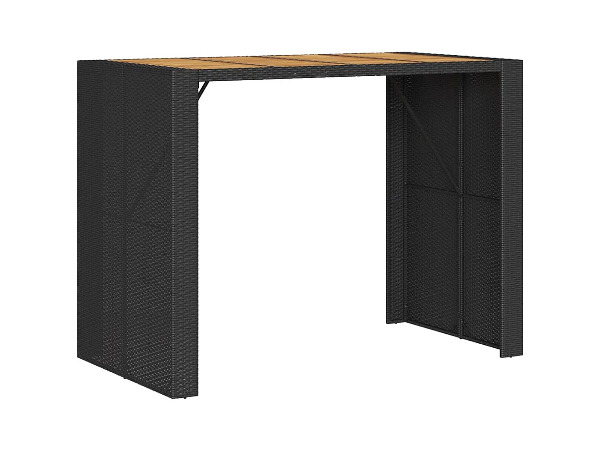 Tuinbartafel acaciahouten blad 145x80x110 cm poly rattan zwart