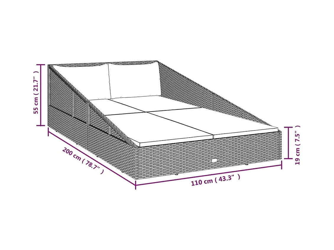 Tuinbed met luifel 190x130 cm poly rattan bruin