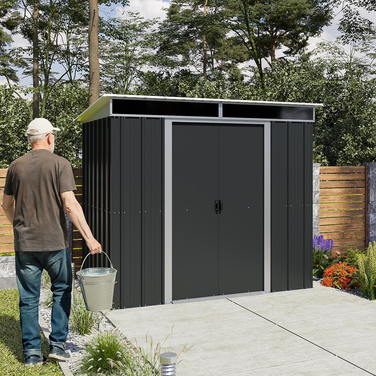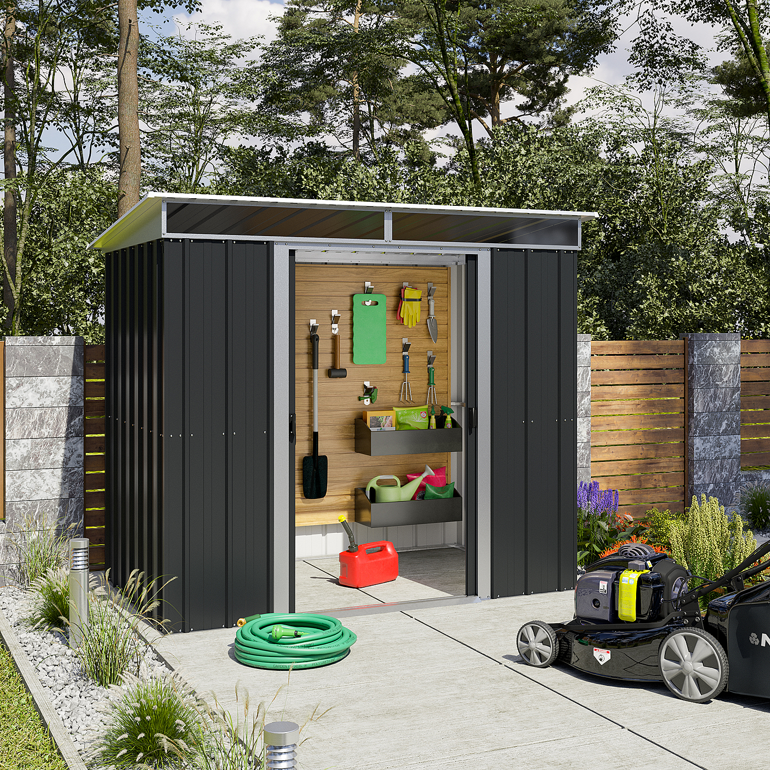 Metalen Tuinhuis "Nebraska" 5,29m² met Geïntegreerde Goot - Ruime Opslag, Weerbestendig - Grijs
