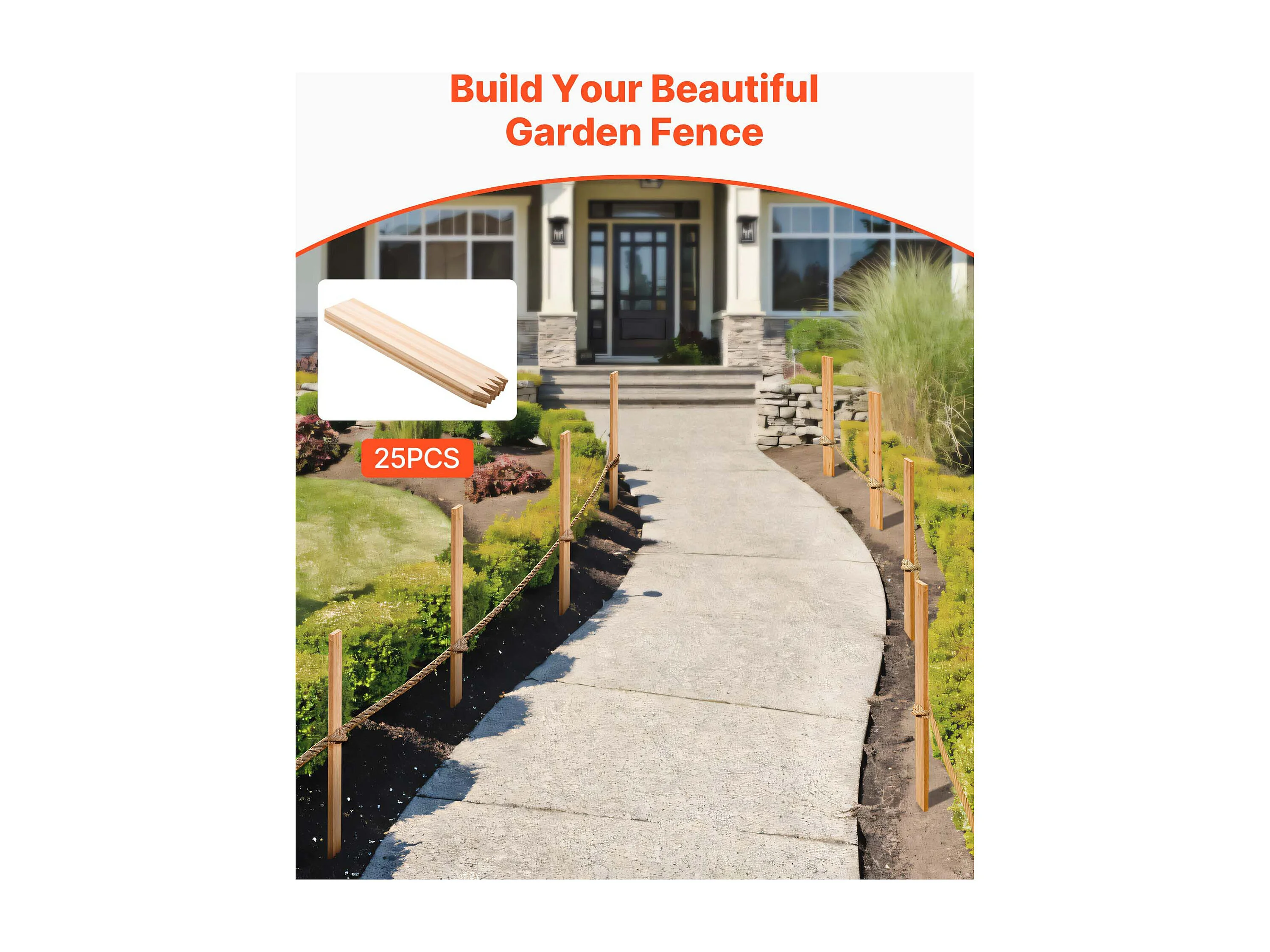 Tuinhek Palen SucceBuy in Hout, Set van 25, Houten Palen met Punt 1.27 x 3.81 x 91.44 cm, Palen voor Erosiebestendige Hekken, Afbakenen van Zones