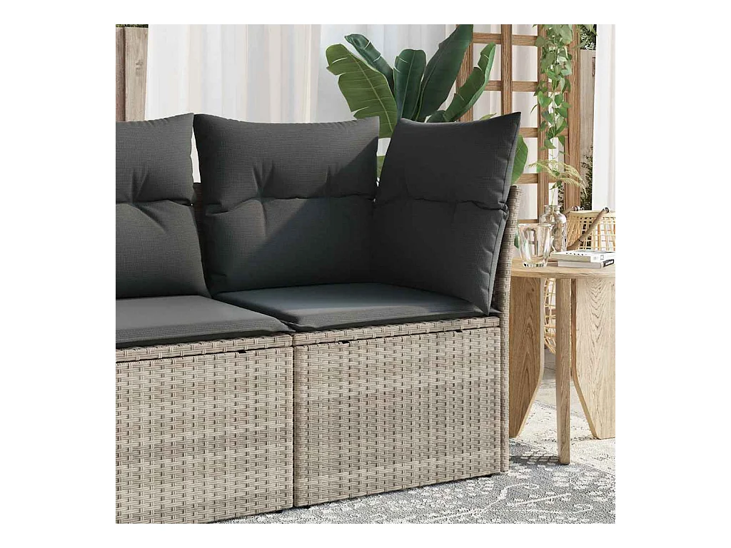 Middenbank sectioneel met kussens grijs geïmpregneerd hout