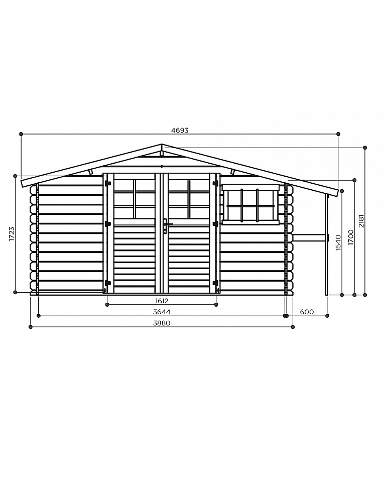 Tuinhuis Solid ARAMIS 11.56m² - 388x298cm + Houthok - 28mm