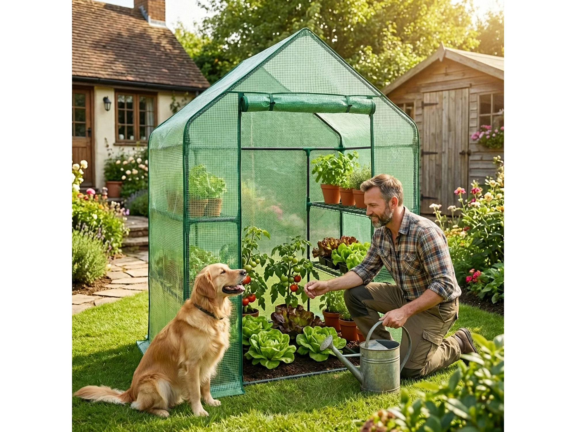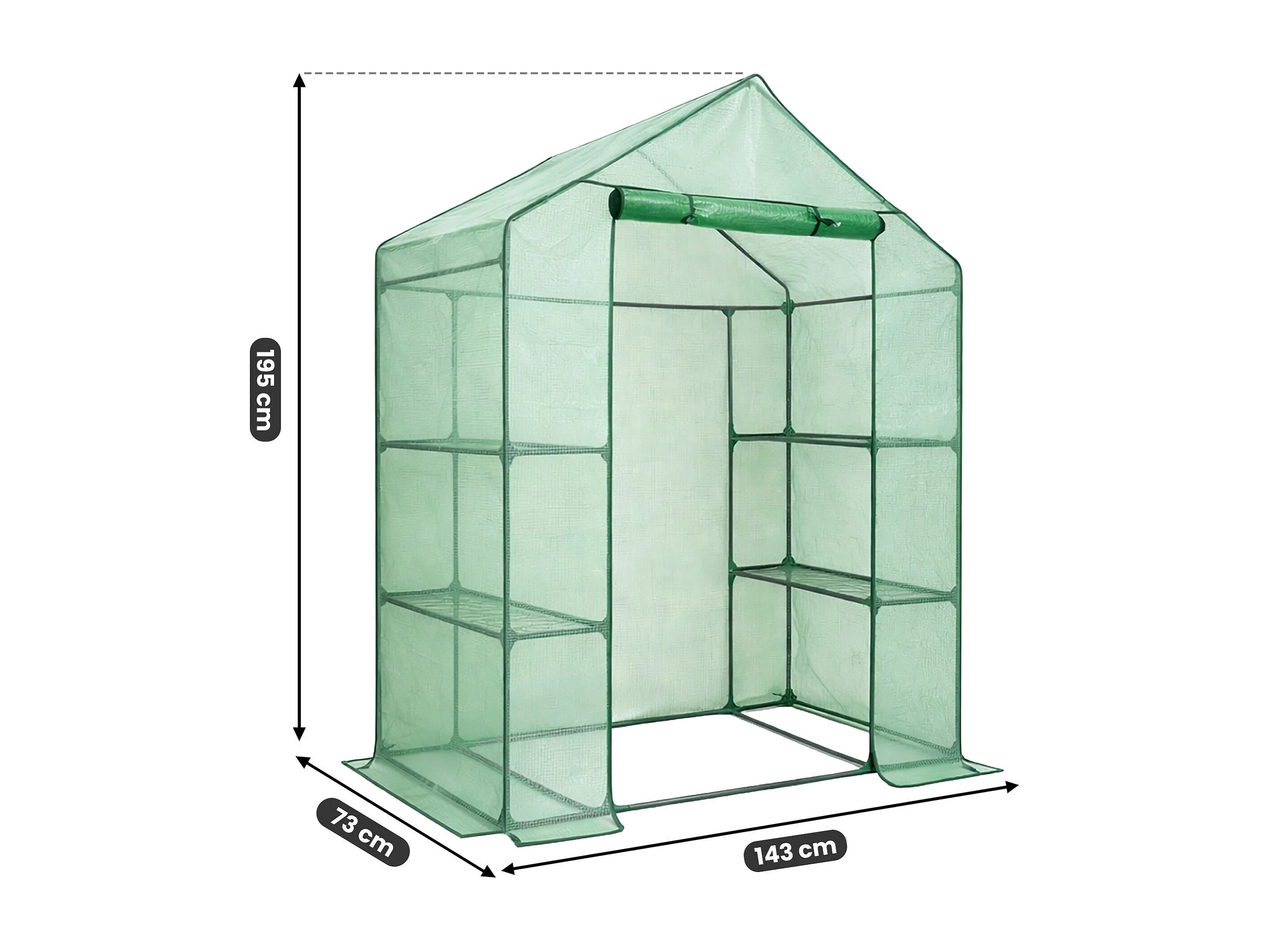 Tuinkas MINI met Legplanken op meerdere niveaus / Broeikas met oprolbare kasdeur / Foliekas / Groen / 143x73x195 cm