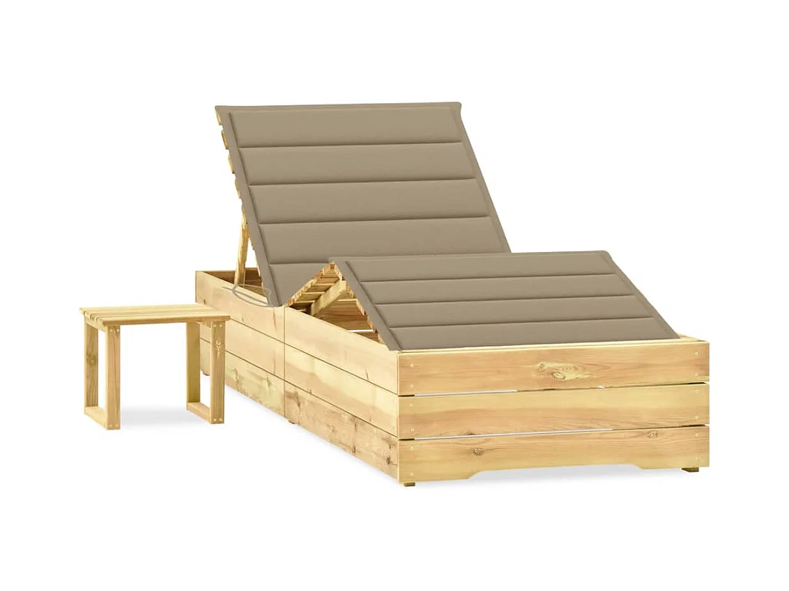 Dubbele chaise longue en beige kussens Geïmpregneerd grenenhout