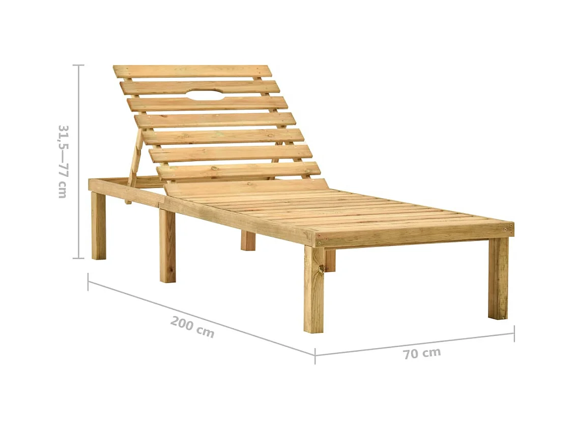 Chaise longue met grijs geblokt kussen Geïmpregneerd grenenhout