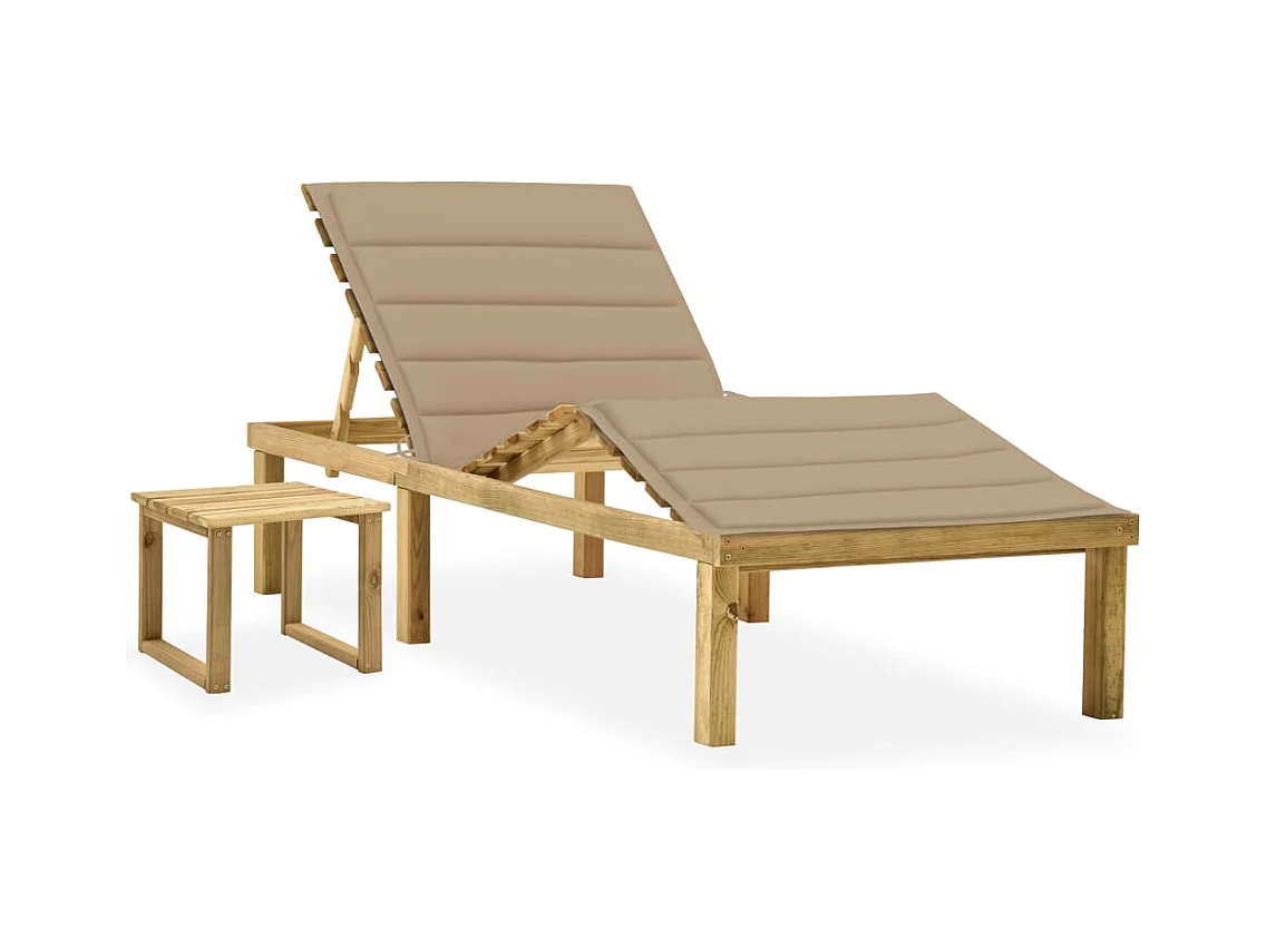 Chaise longue met beige kussen Geïmpregneerd grenenhout