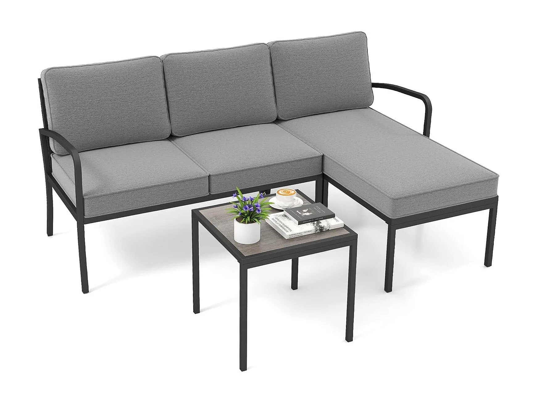 Tuinlounge 3-delig, tuinmeubelset, outdoor lounge met tafel en kussens, terrasmeubels, zitgroep voor tuin, terras, balkon ZB33180