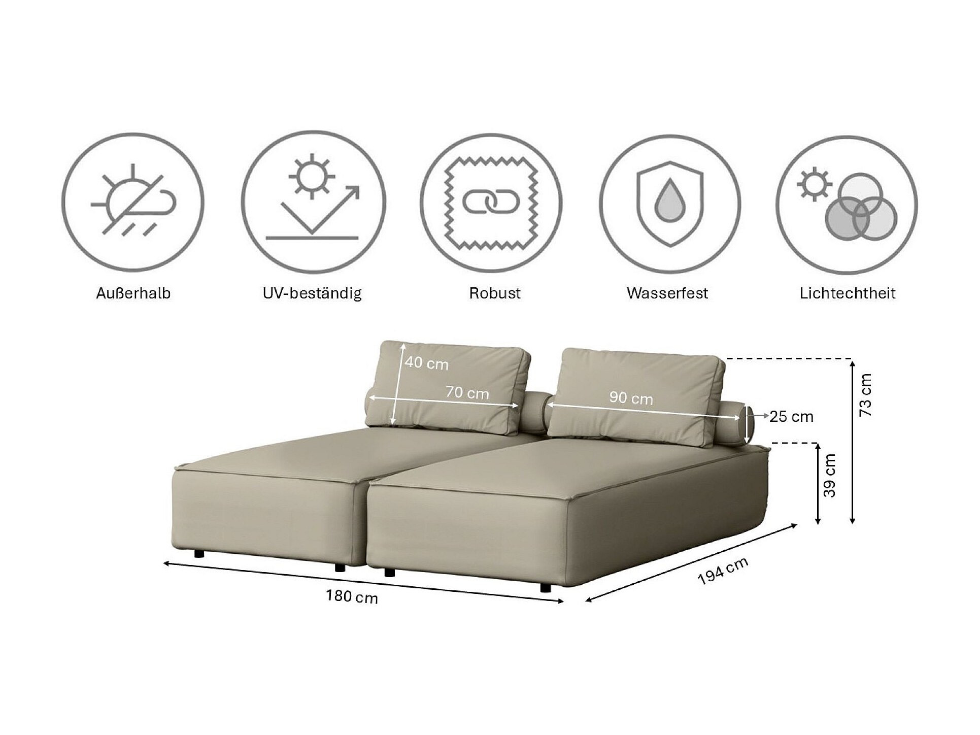 Tuinmeubel dubbele ligstoel MALIBU, stof ODYSSEY, donkerbeige