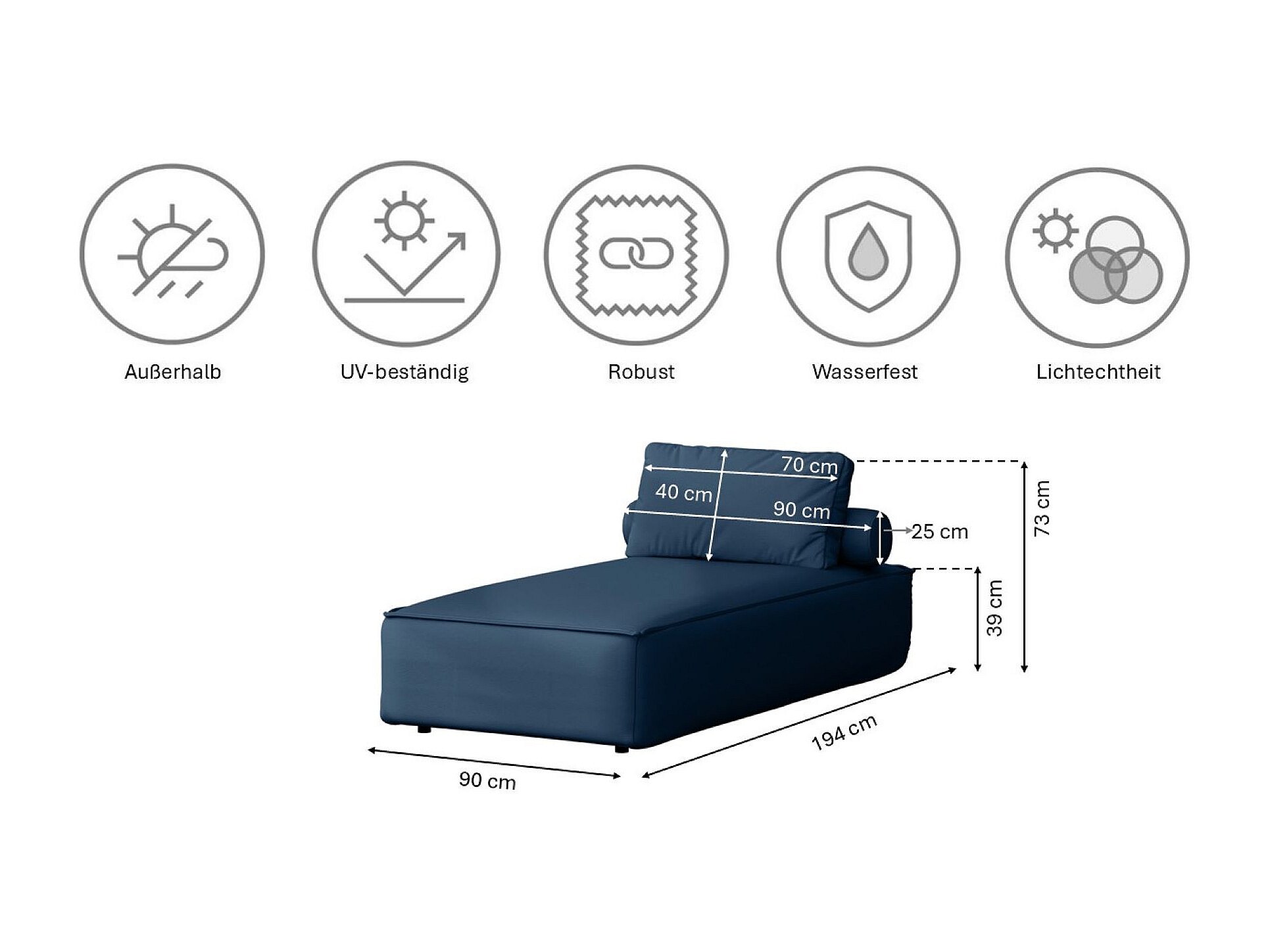 Tuinmeubel ligstoel MALIBU, stof ODYSSEY, marineblauw
