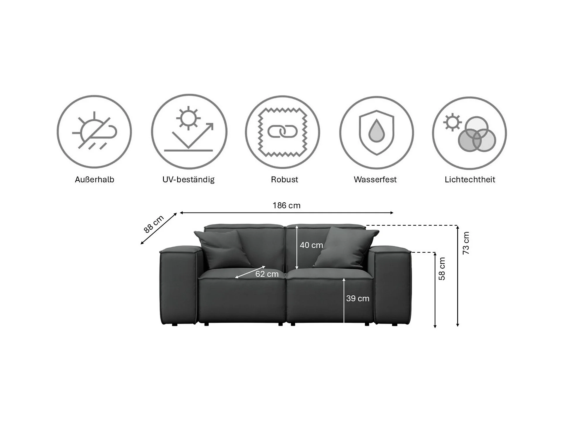 Tuinmeubelbank tweezits MALIBU, stof ODYSSEY, antraciet