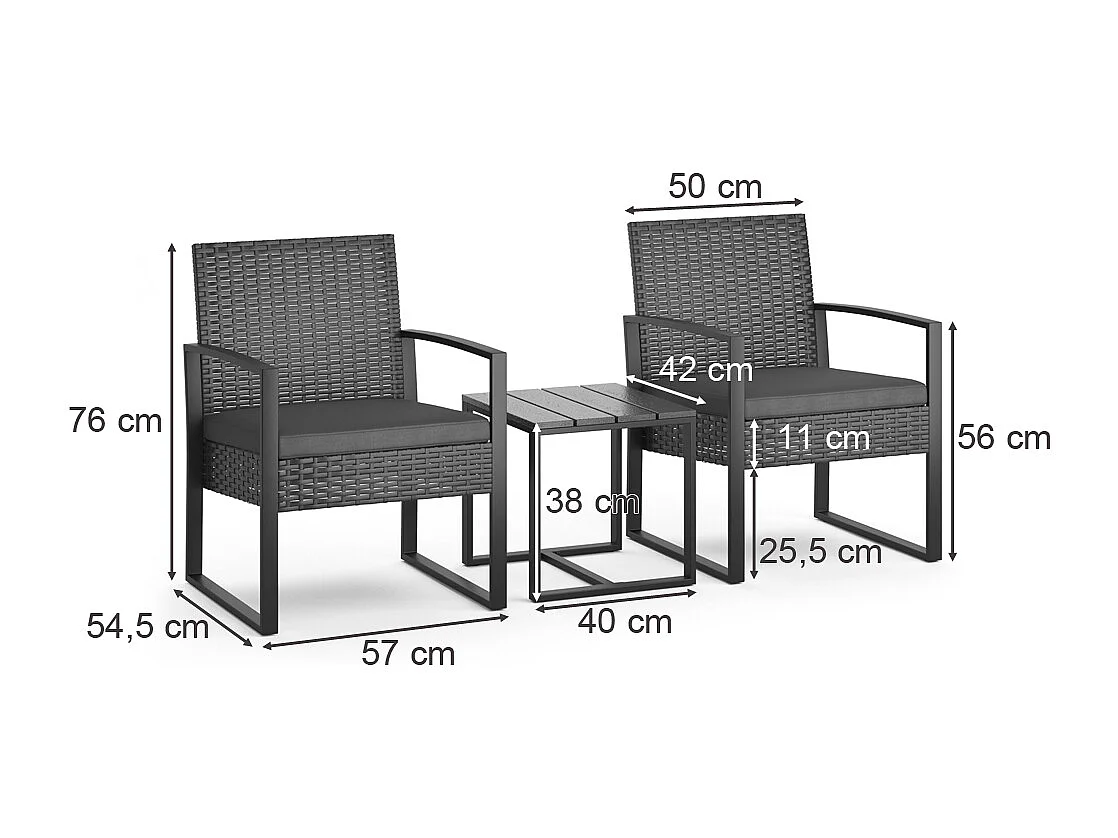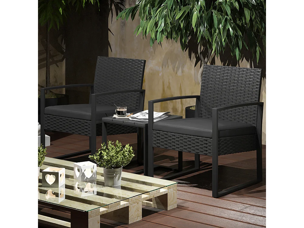 3-delige Loungeset met kussens poly rattan donkergrijs