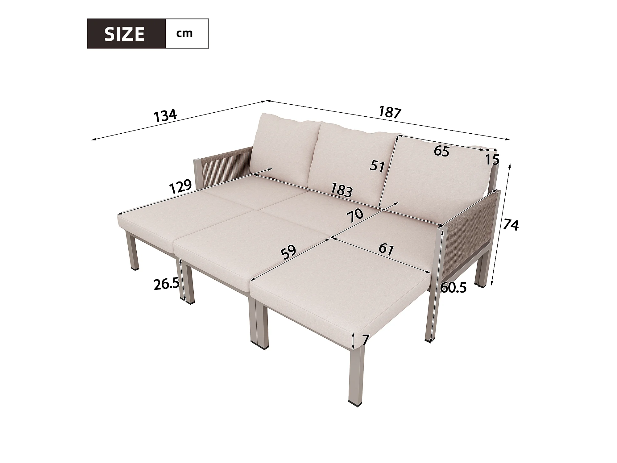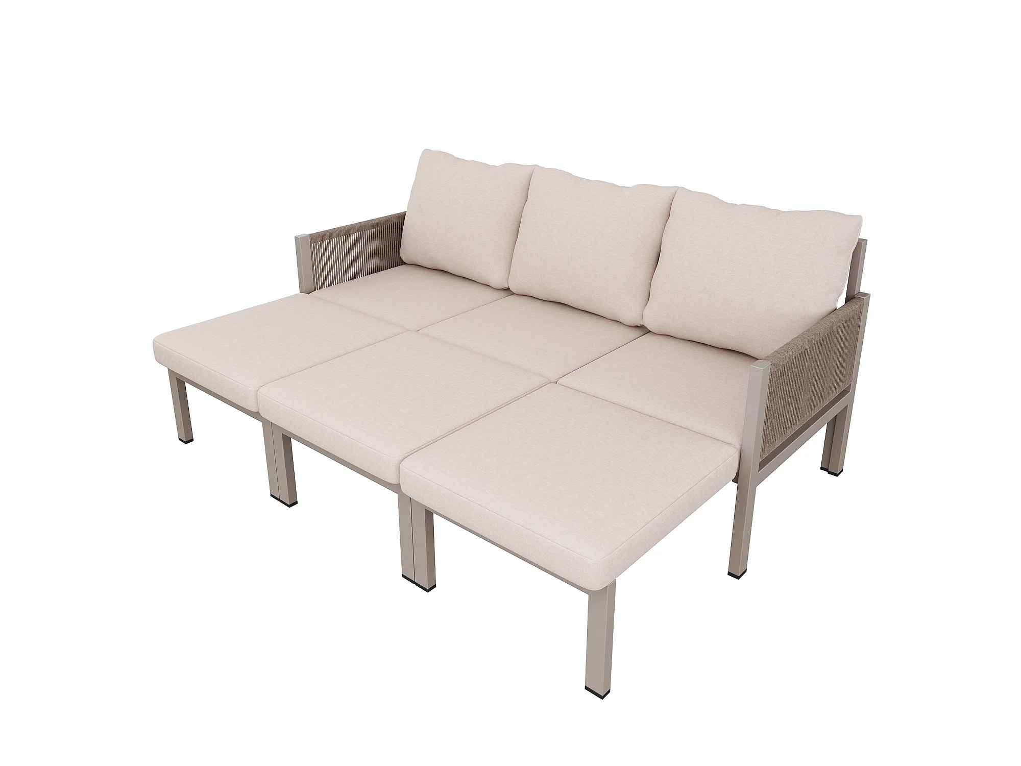 Tuinmeubelset voor 3 personen - Multifunctionele bank - om te zetten in een fauteuil - Gegalvaniseerd staal - Khaki