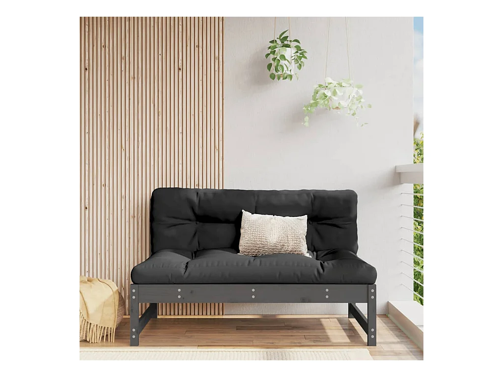 Tuinmiddenbank met grijze kussens massief grenenhout