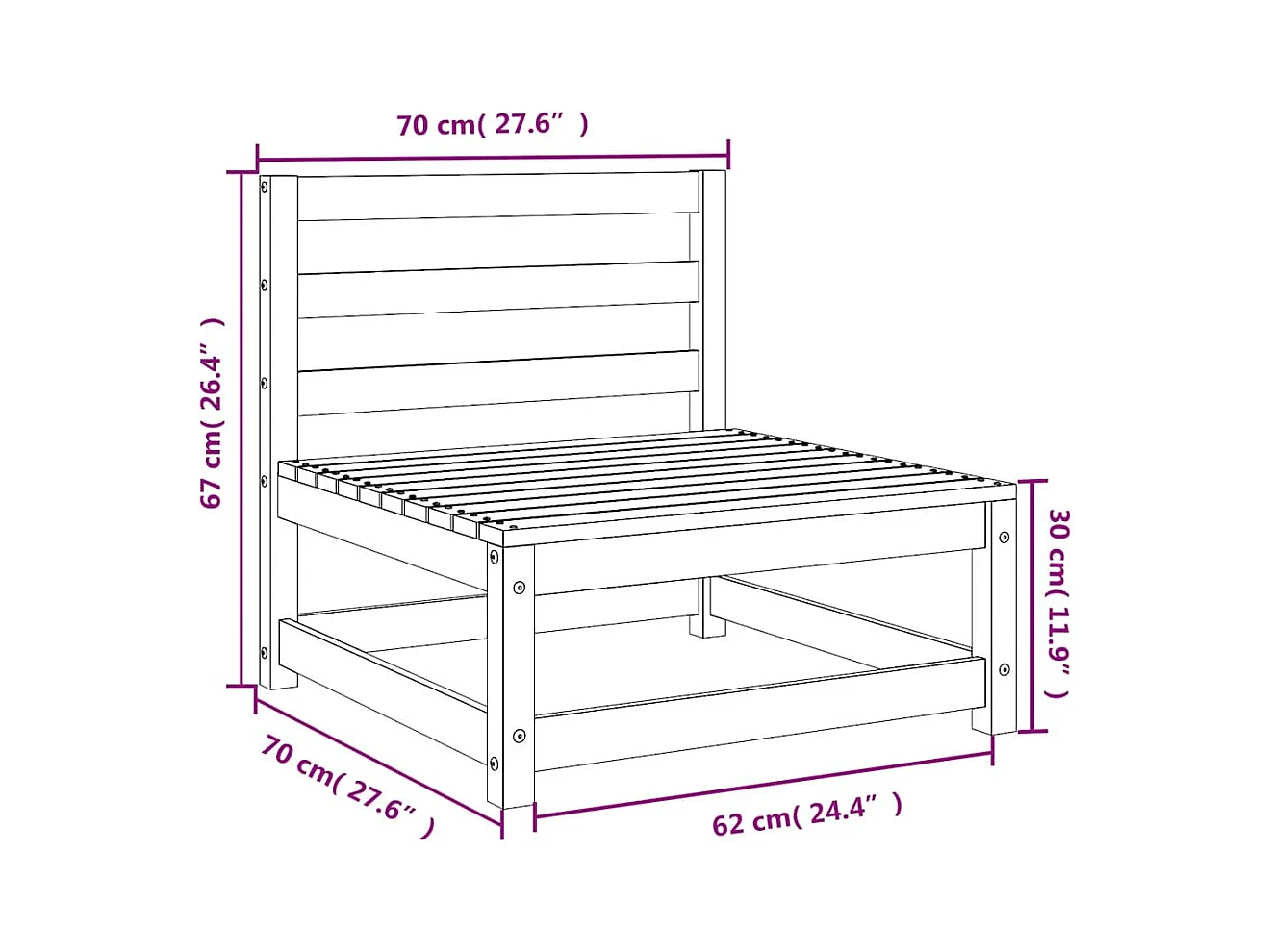 Tuinmiddenbank 2 st massief grenenhout zwart