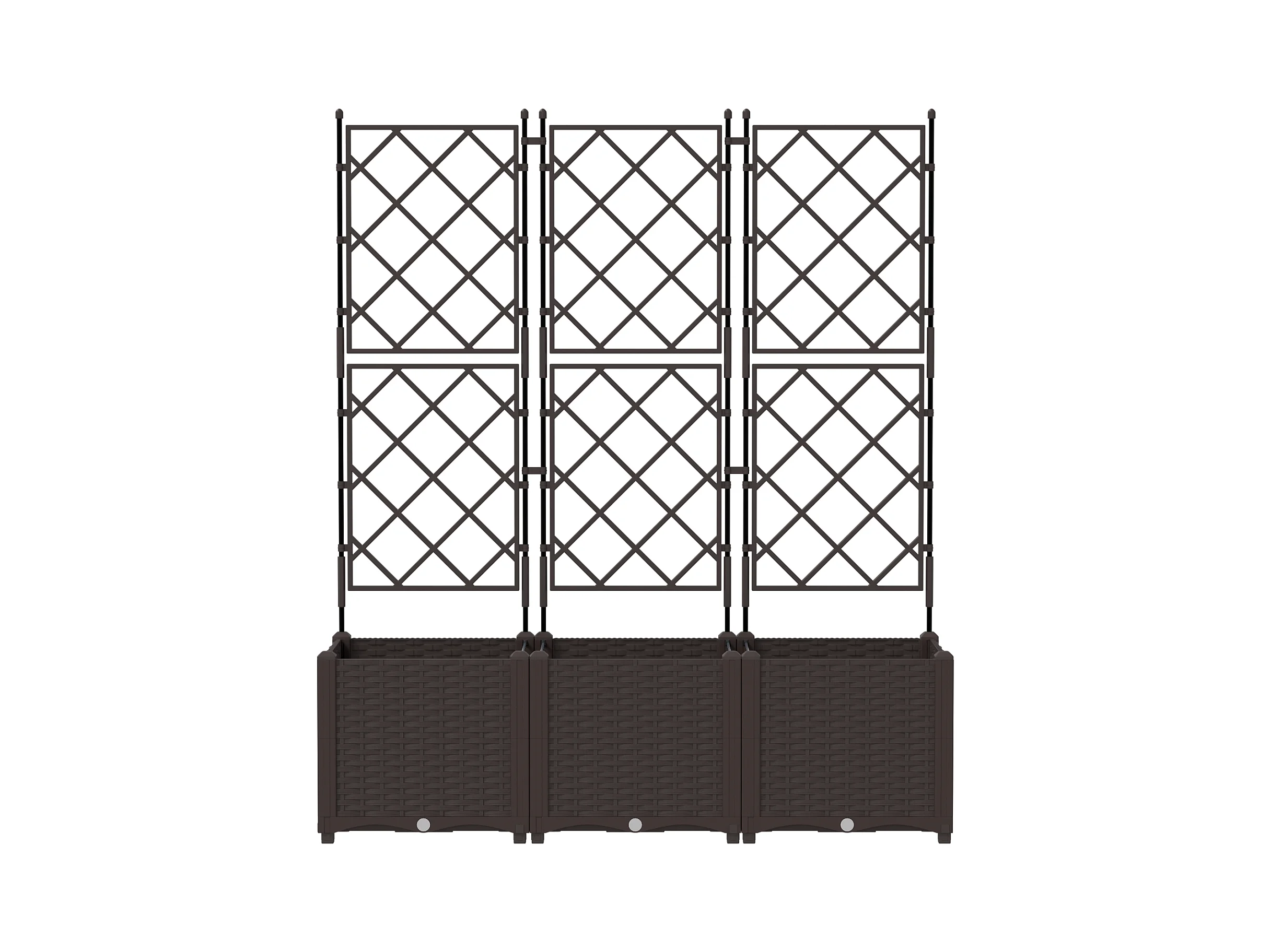 Tuinplanter met trellis 3 stuks bruin 120x40x143 cm
