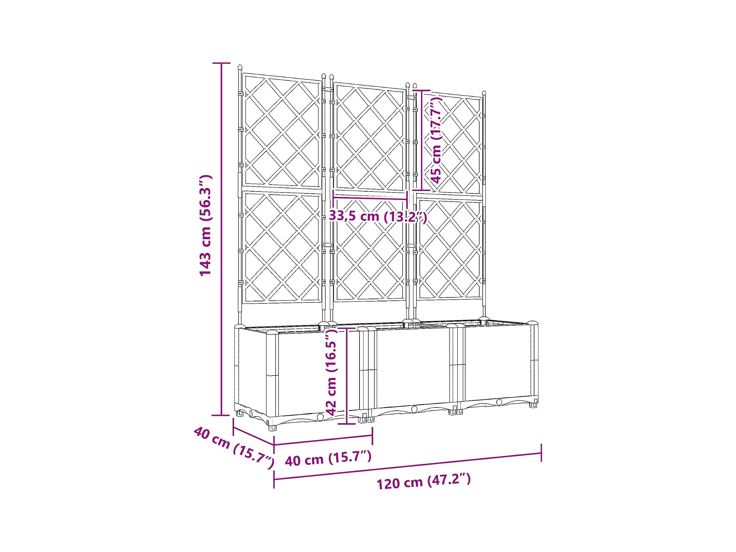 Plantenbak met trellis Bruin 40x40x121,5 cm PP