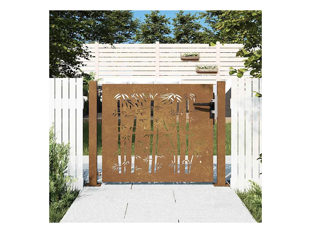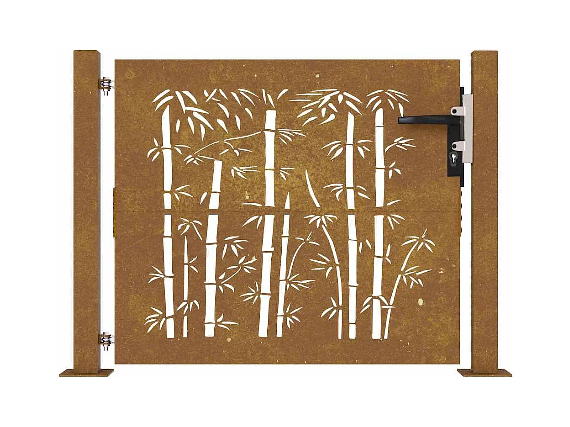 Tuinpoort 105x80 cm cortenstaal bamboe design