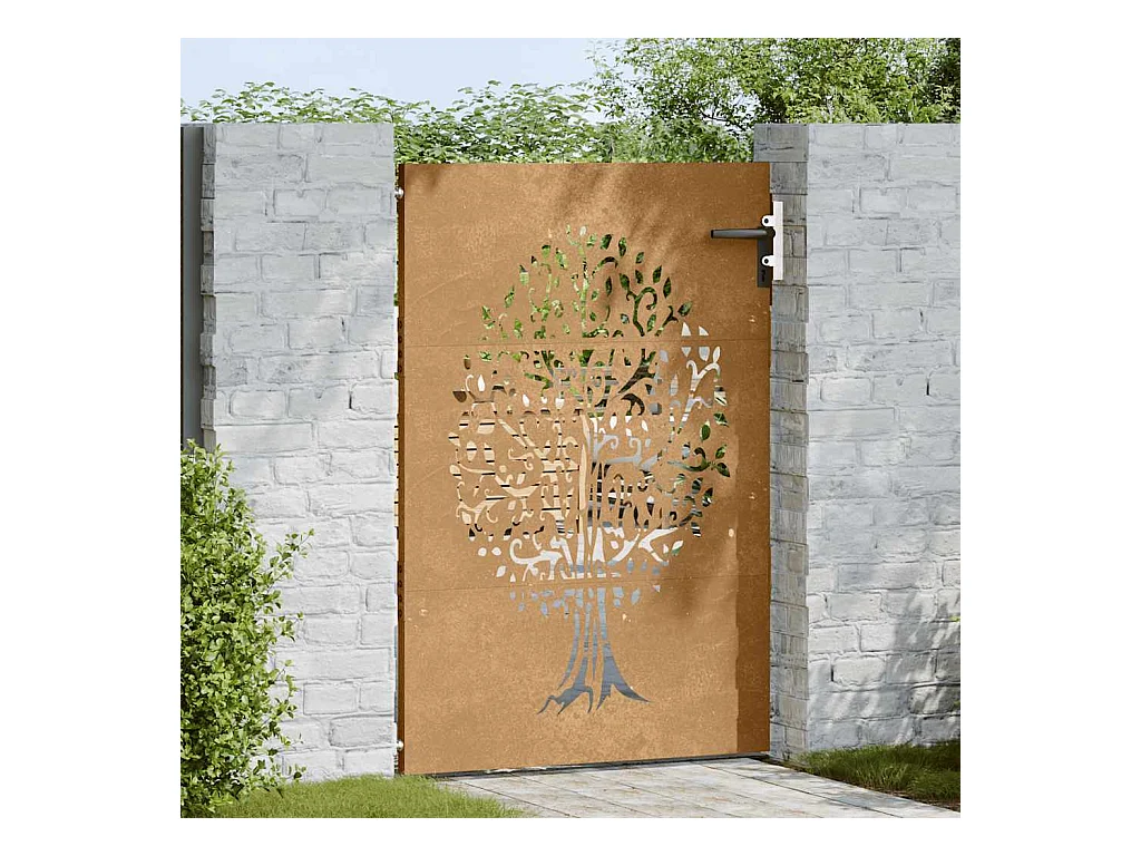 Tuinpoort 85x125 cm cortenstaal boomdesign