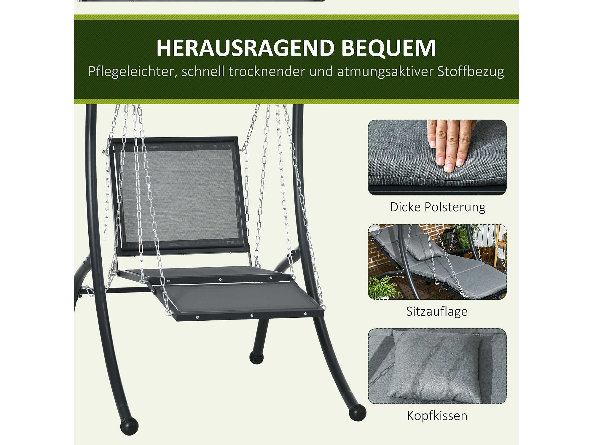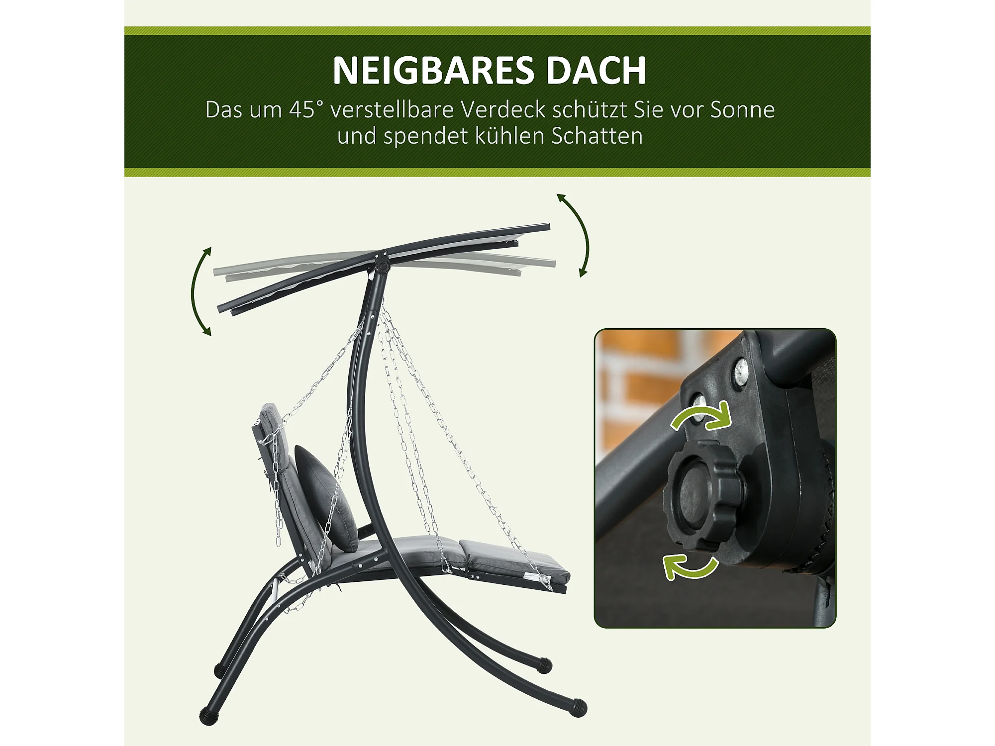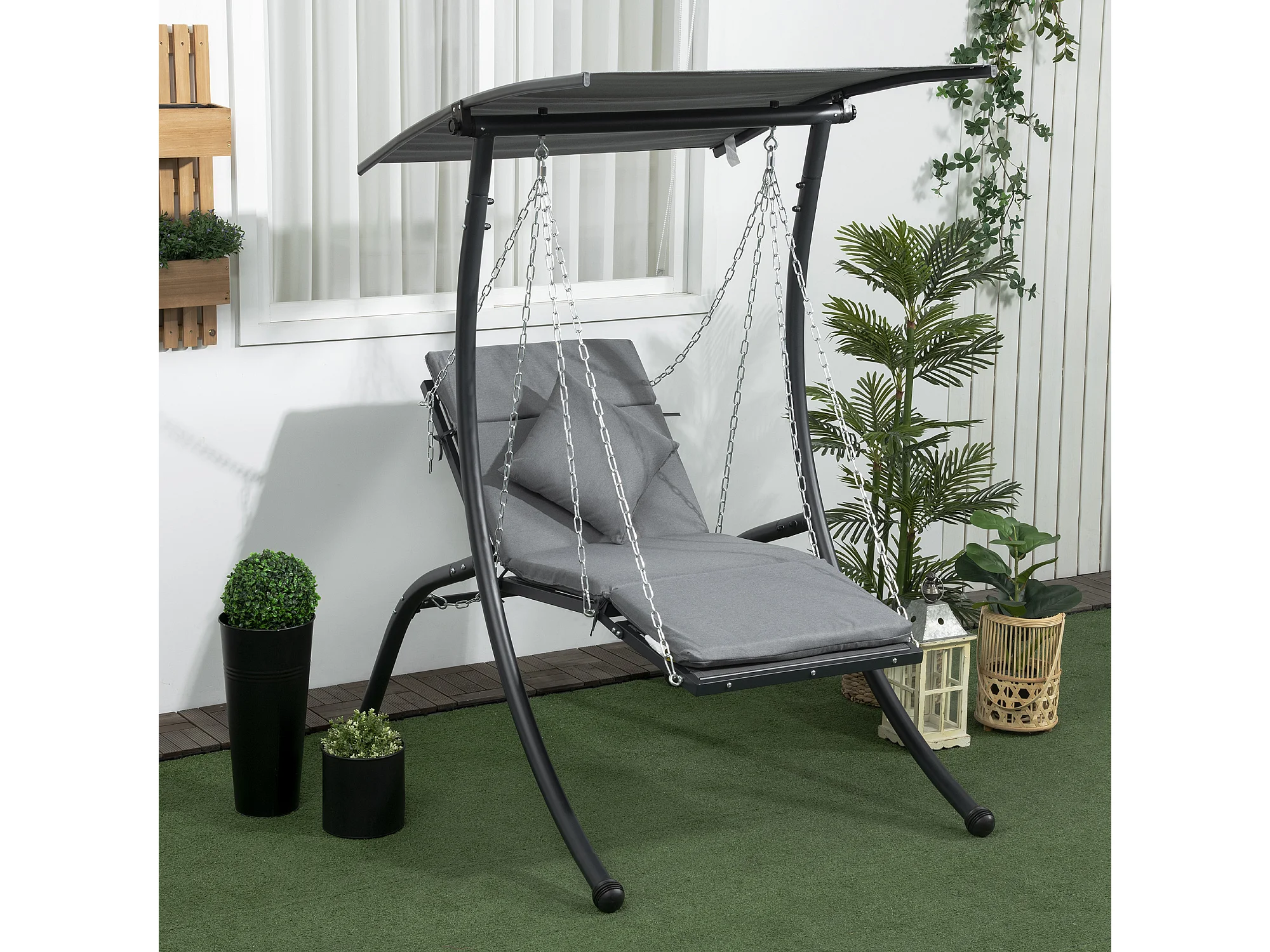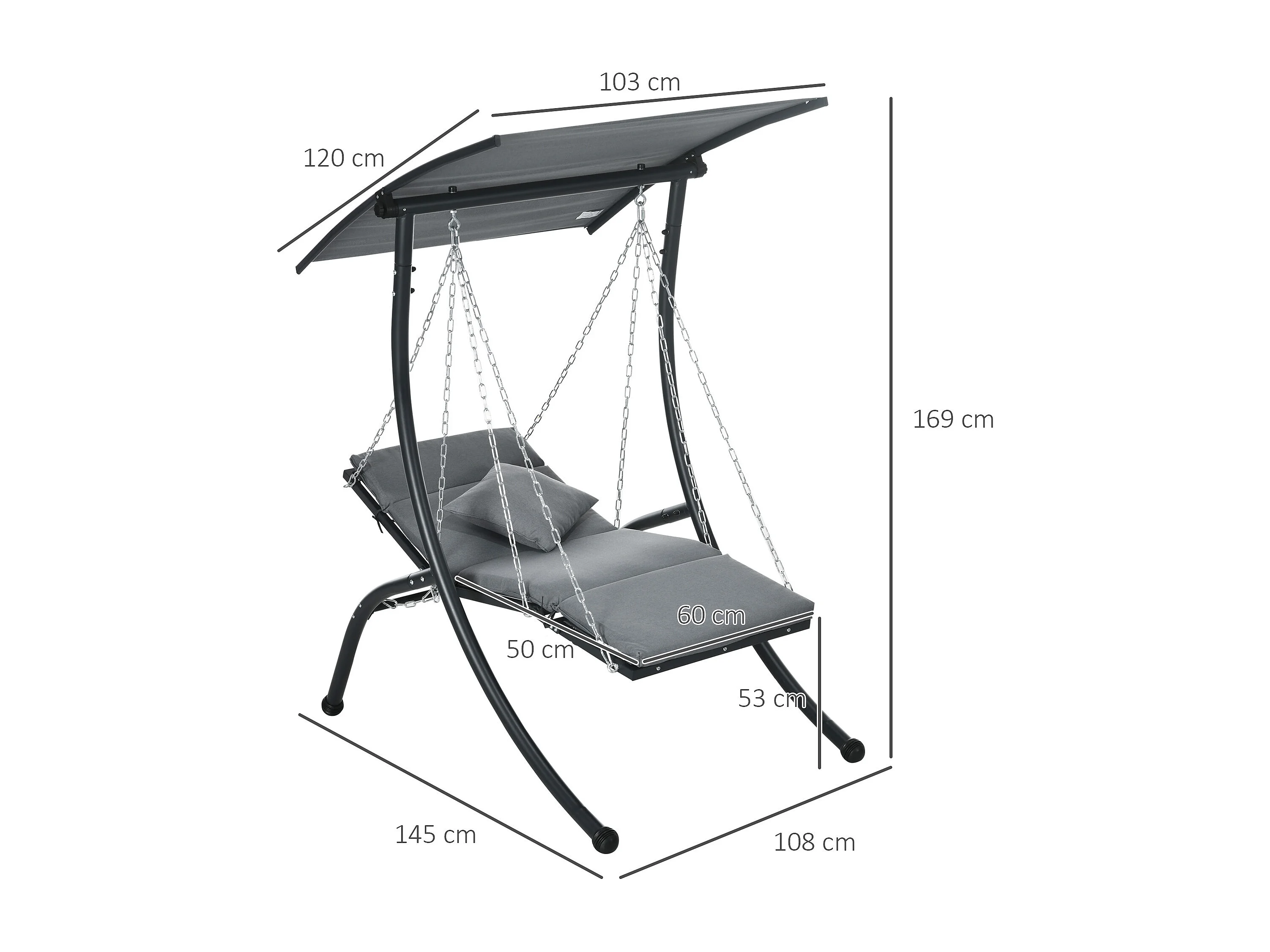 Tuinschommel met kussen en verstelbaar dak, staal, donkergrijs (108x145x169cm)