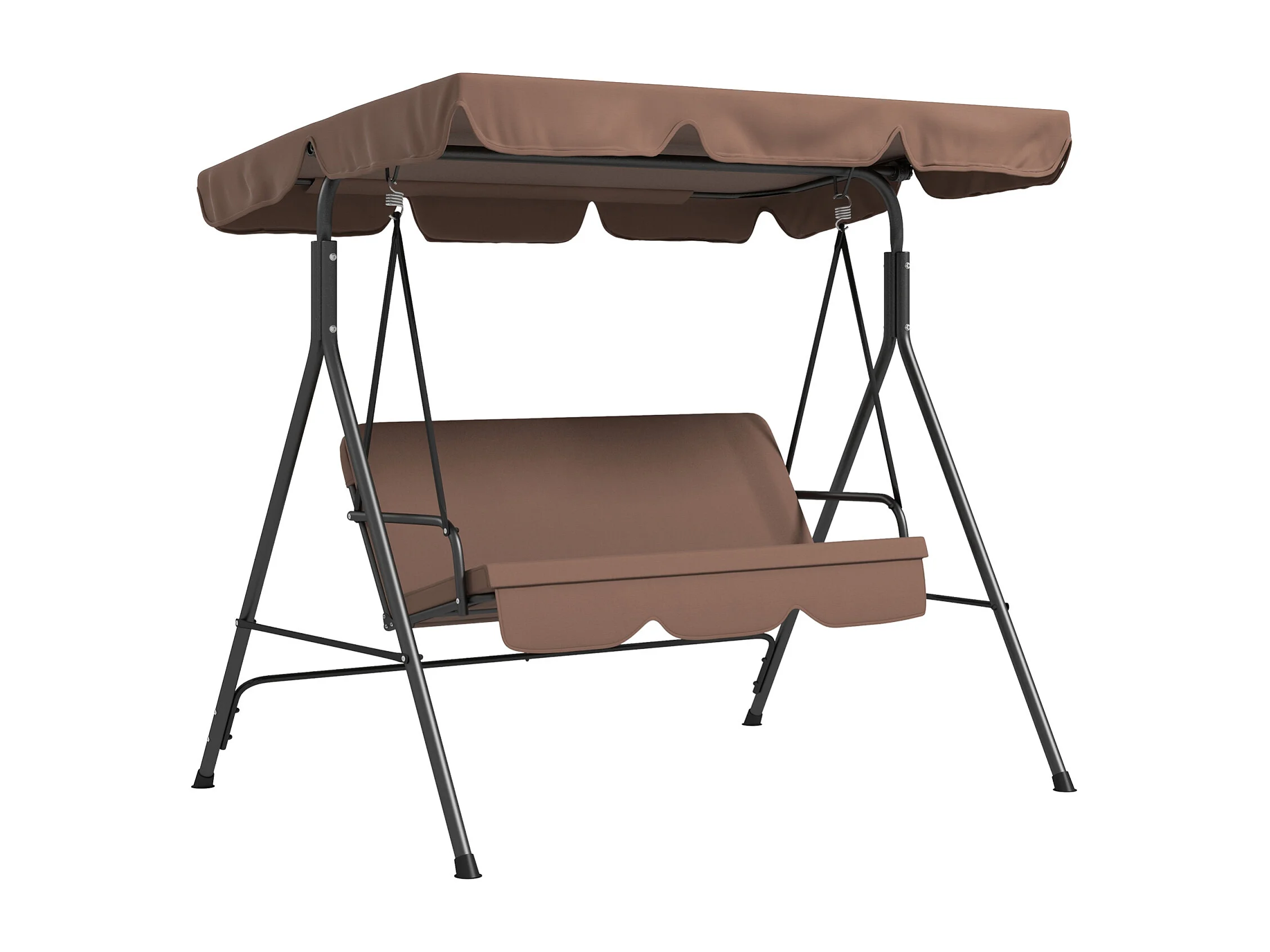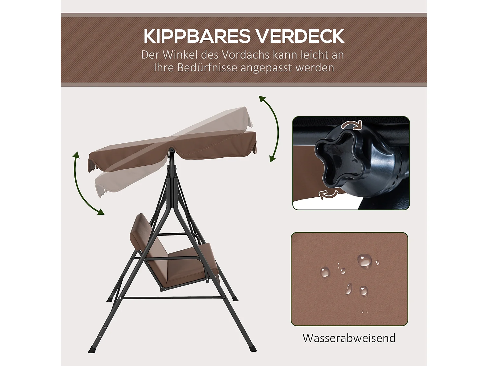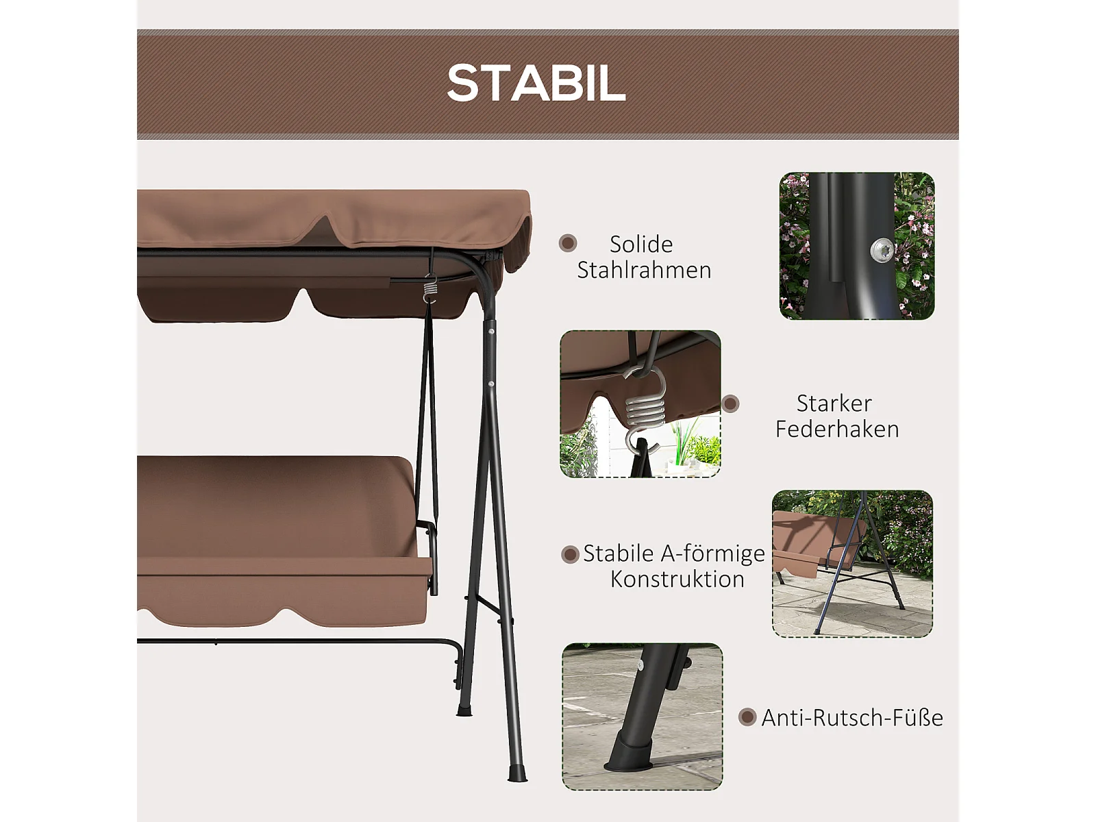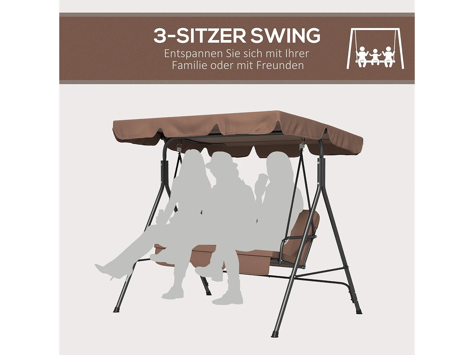 Tuinschommelstoel, 3-zits ligstoel met verstelbare zonnekap, geschikt voor tuinen en terrassen