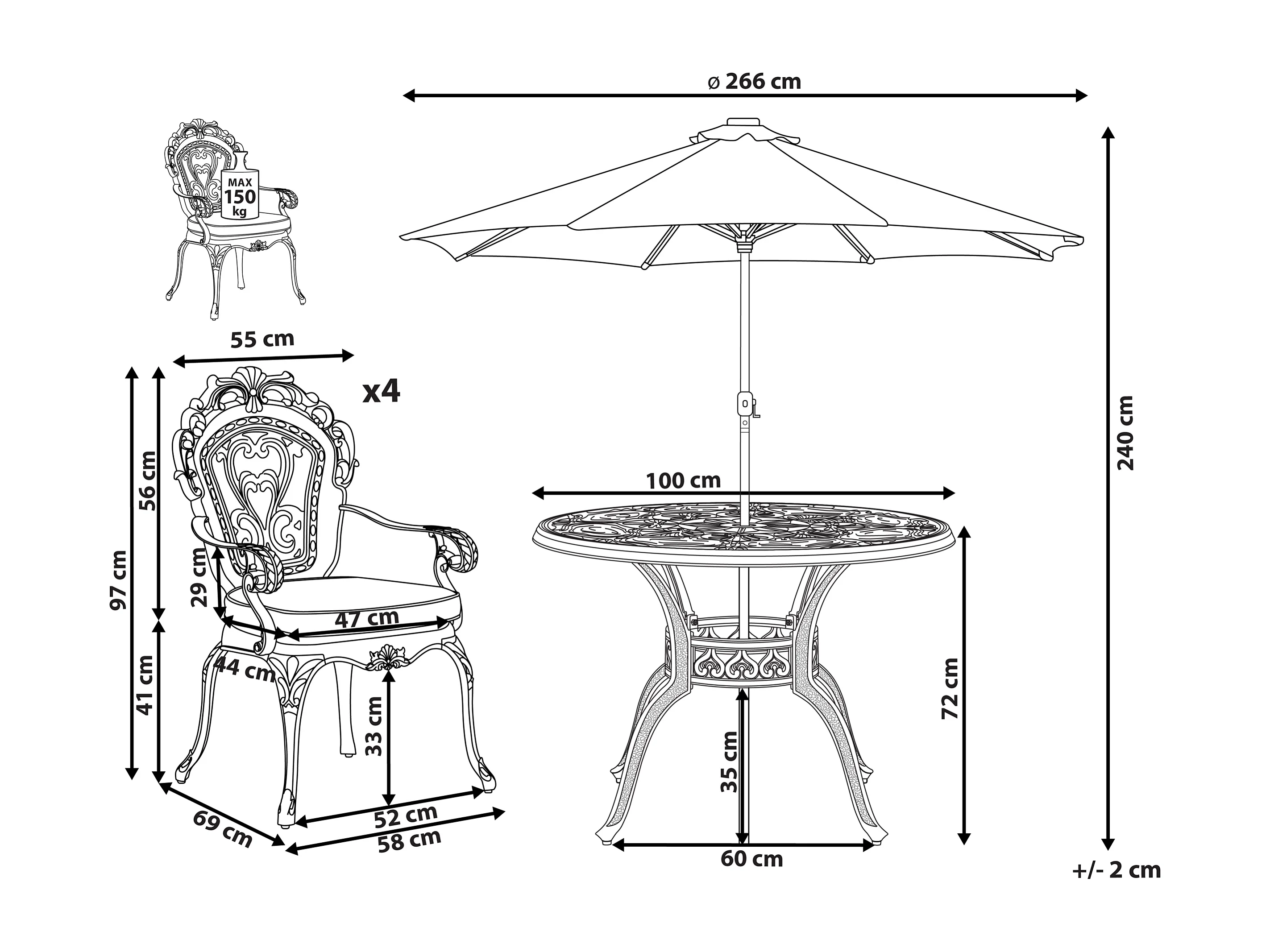 Tuinset 4-zitter SAPRI Met parasol (16 opties) Metaal Donkerbruin