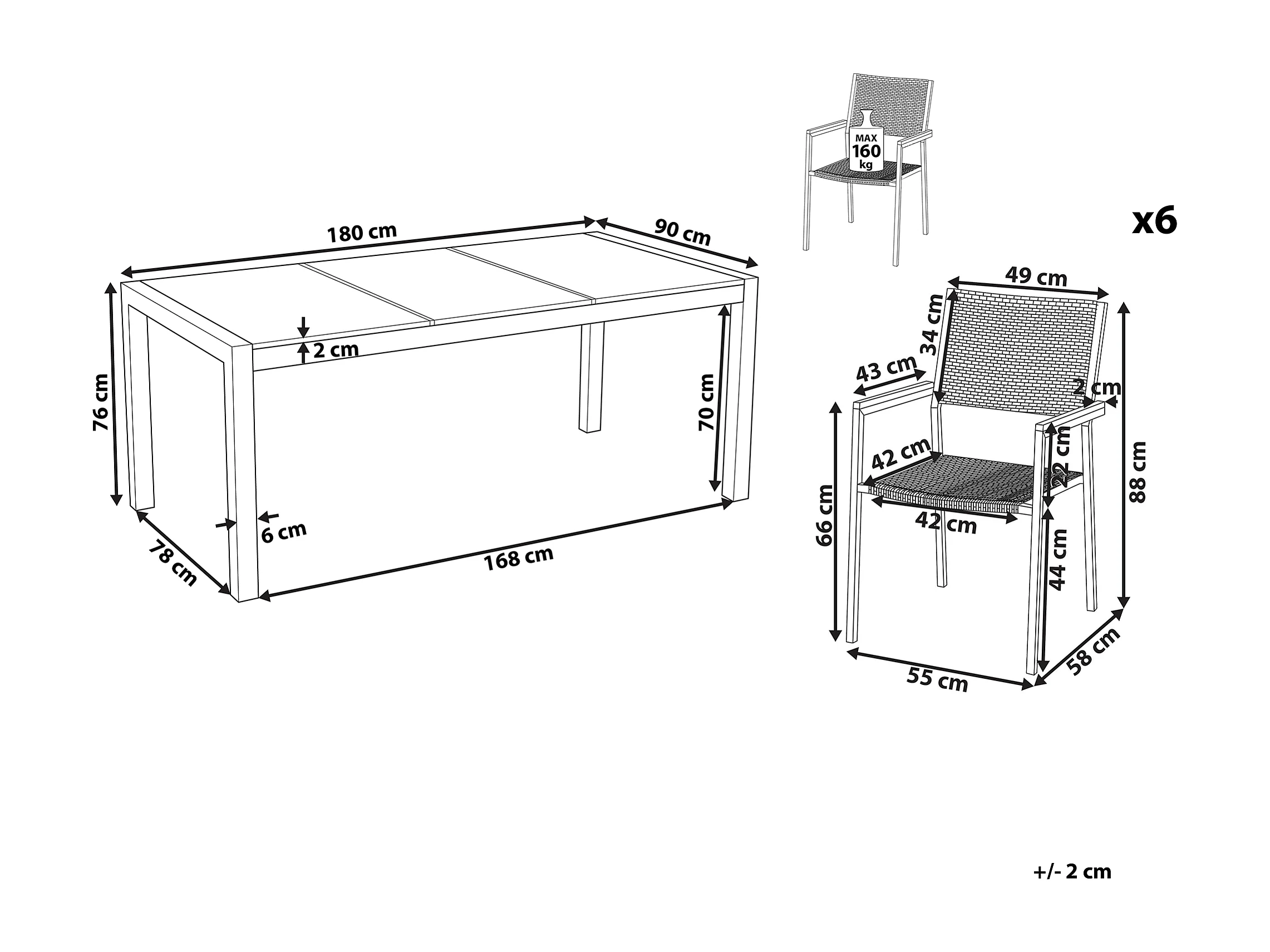 Tuinset 6-zitter GROSSETO Driedubbele plaat Basalt Gevlamd Zwart