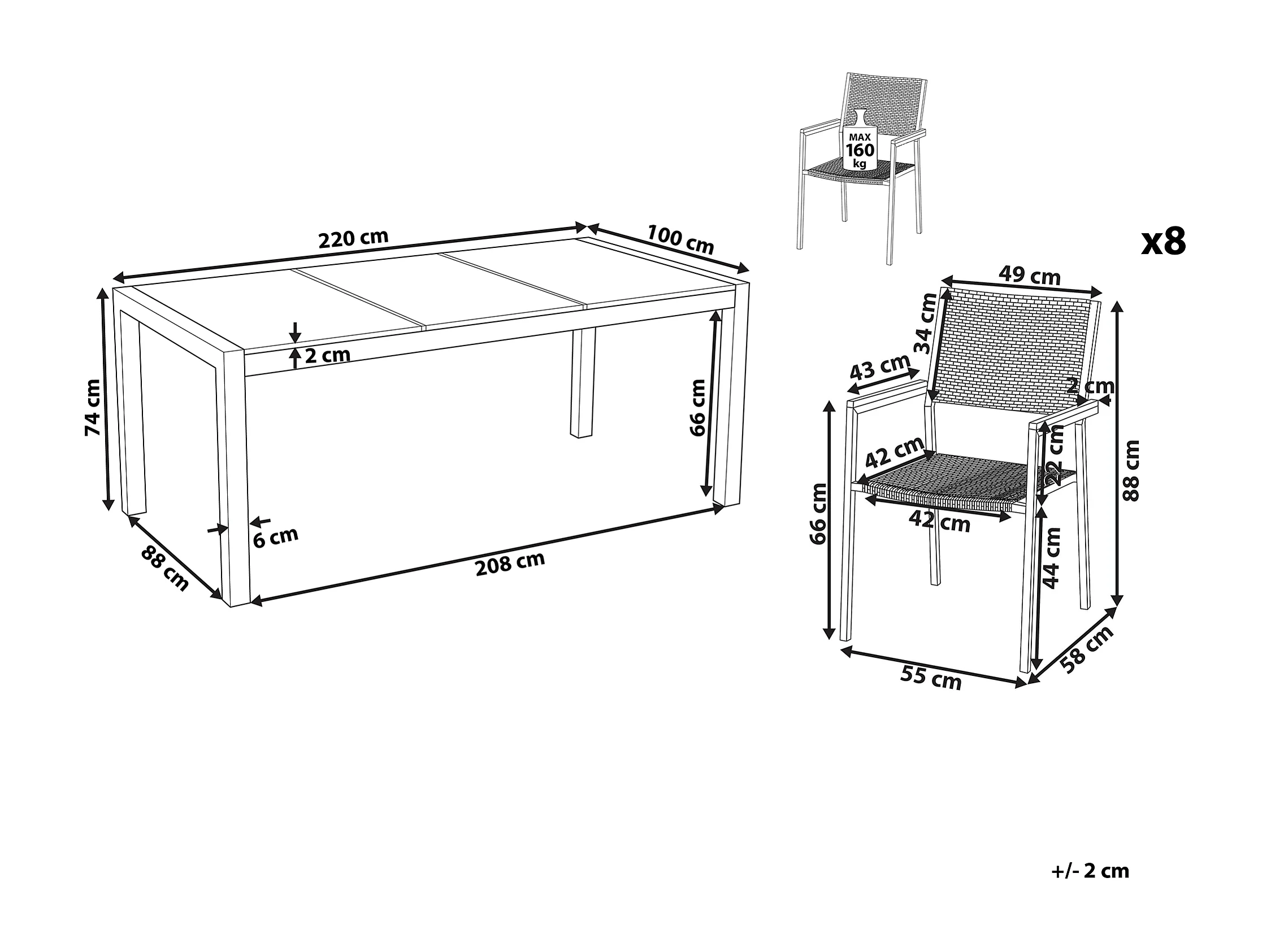Tuinset 8-zitter GROSSETO Driedubbele plaat Graniet Gevlamd Zwart