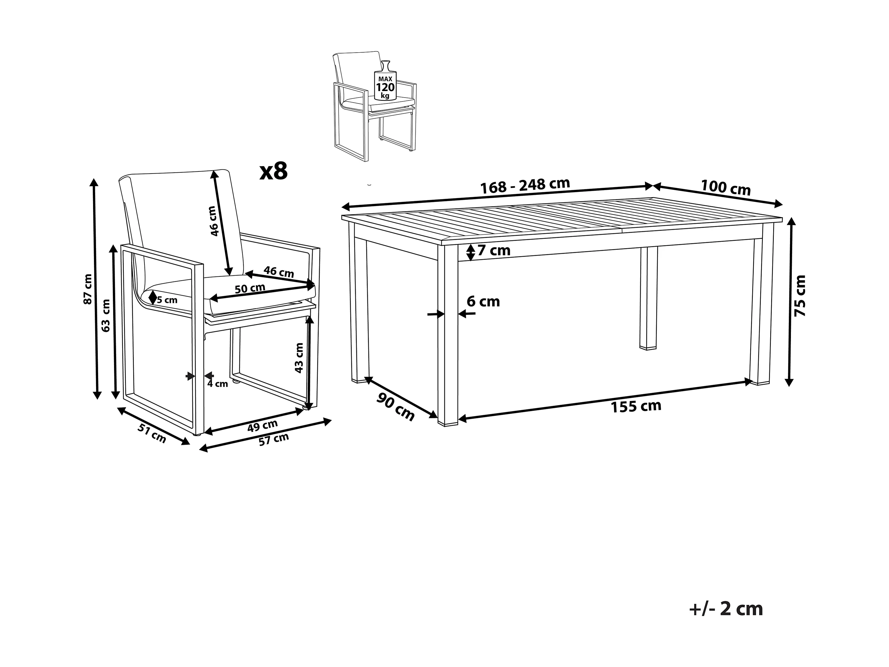 Tuinset 8-zitter PANCOLE met kussens Metaal Grijs