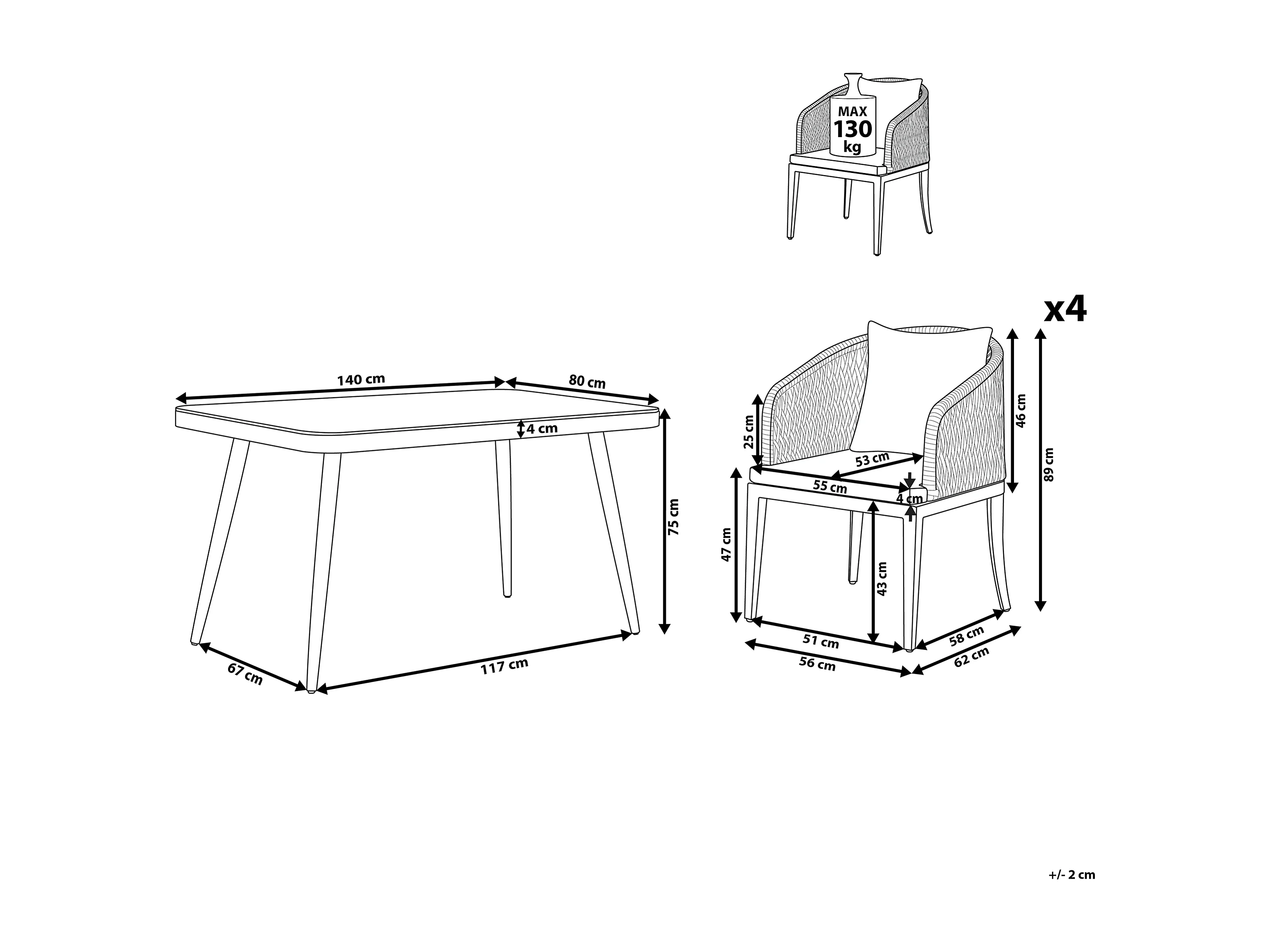 Tuinset 4-zitter LIPARI met kussens Metaal Grijs