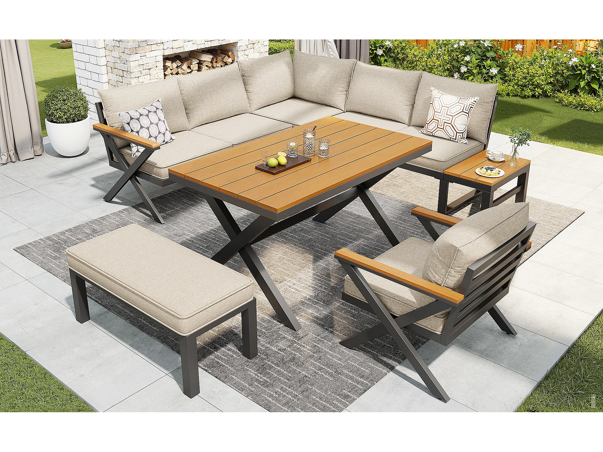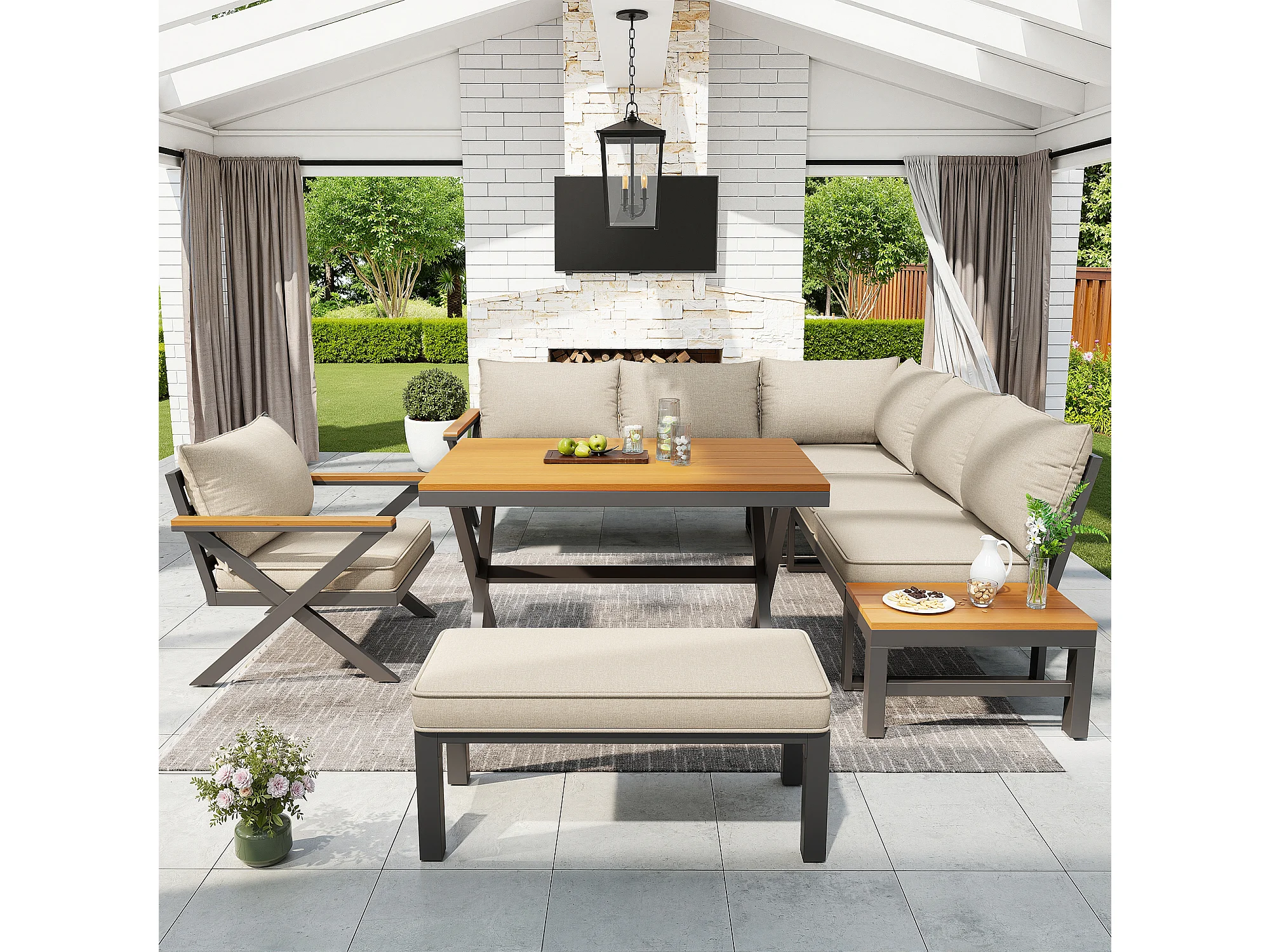 Tuinset - met kussens + tafel + hoekbank + zitbank + fauteuil - metaal - beige