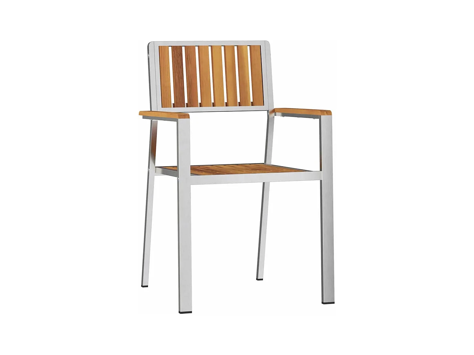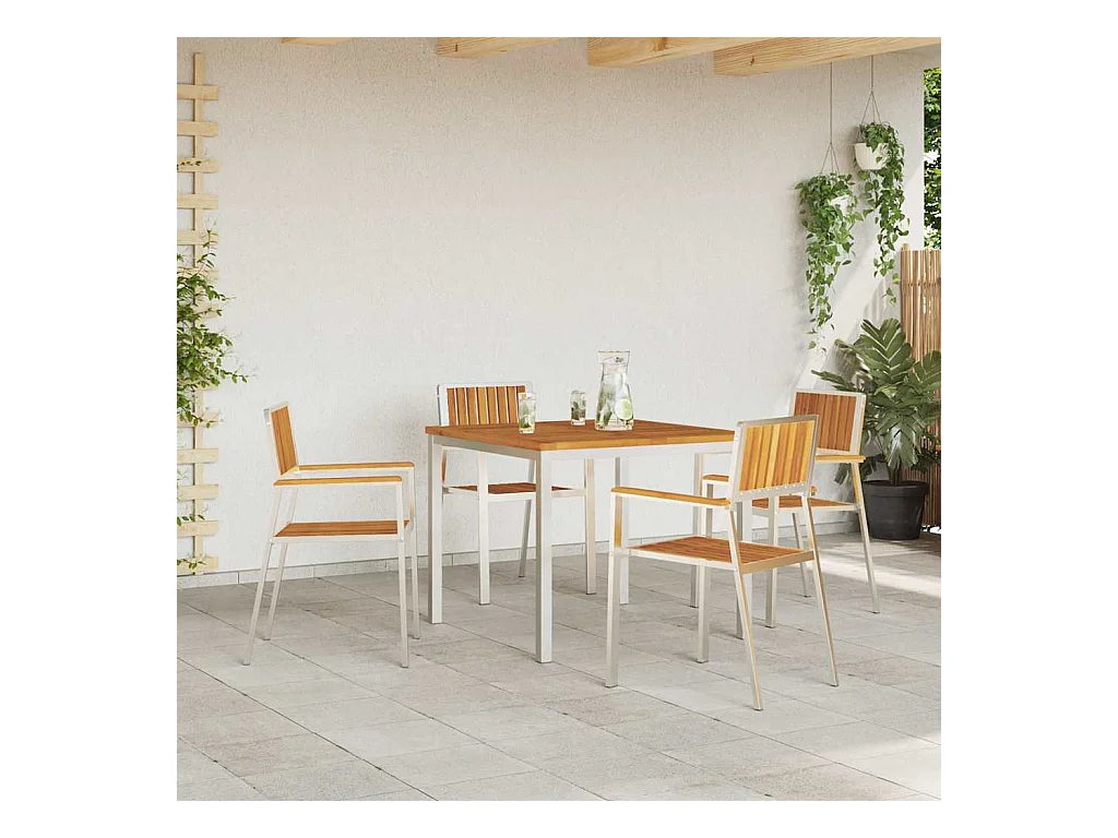 Tuinstoelenset van 4 massief teakhout en roestvrij staal