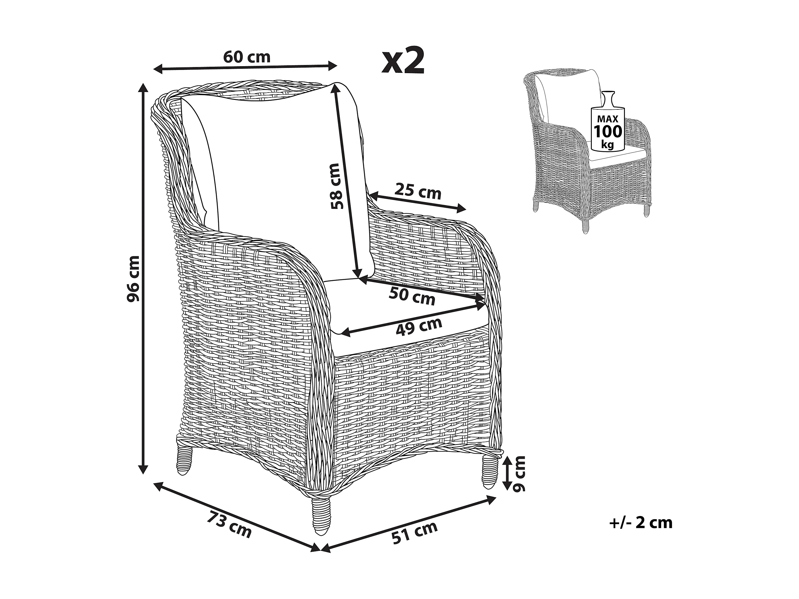 Set van 2 stoelen met zitkussen CASCAIS Grijs