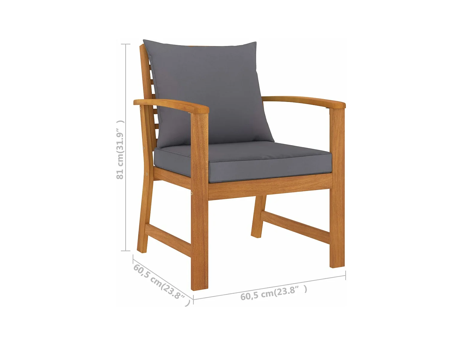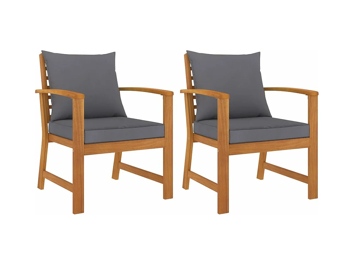 Tuinstoelen 2 st met donkergrijs kussen massief acaciahout
