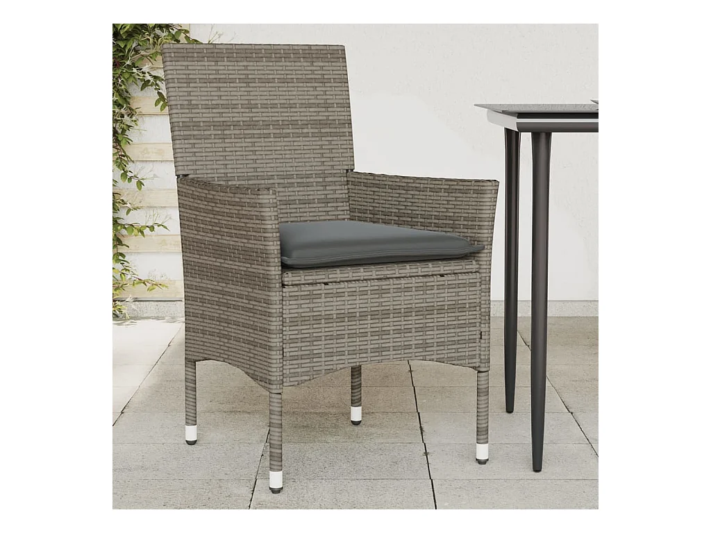 Tuinstoelen 2 st met kussens poly rattan grijs