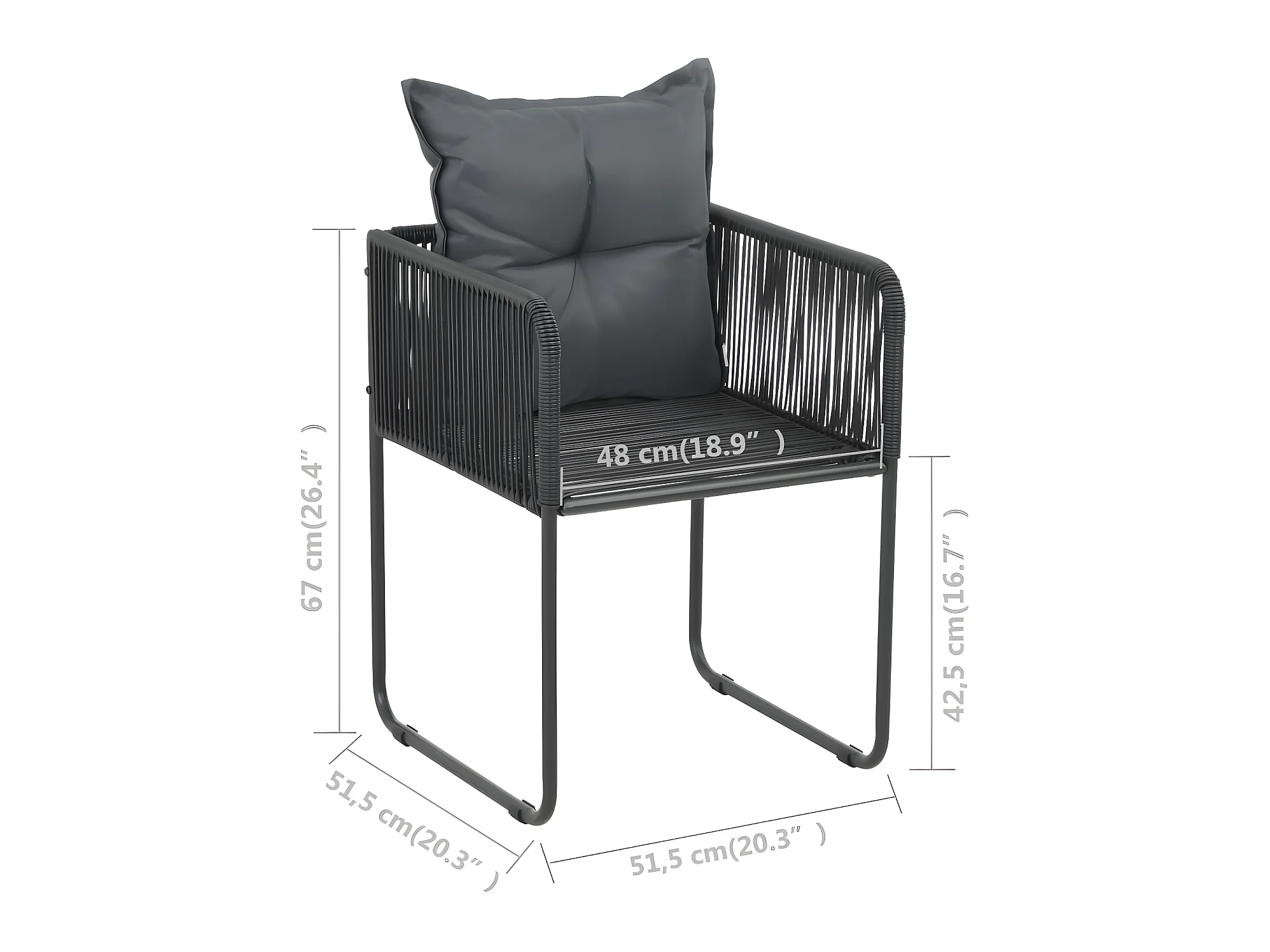 Tuinstoelen 2 st met kussens poly rattan zwart