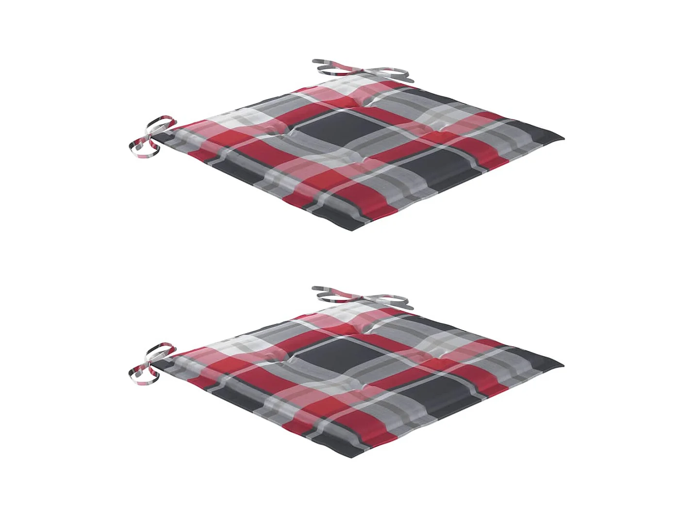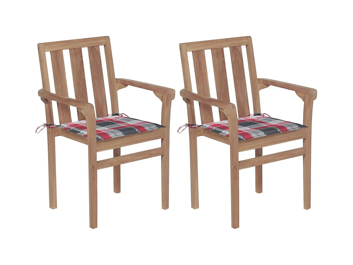 Tuinstoelen 2 st met rood geruite kussens massief teakhout