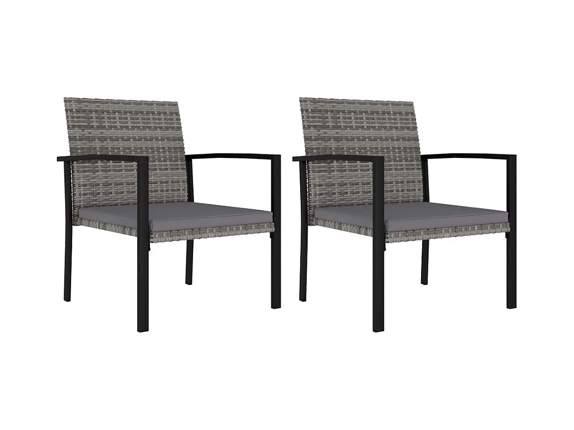Tuinstoelen 2 st met kussens poly rattan grijs