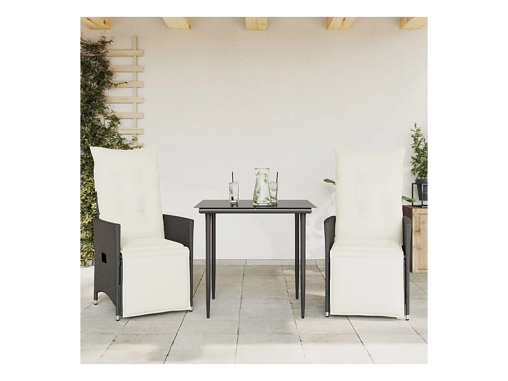 Tuinstoelen 2 st verstelbaar met kussens poly rattan zwart