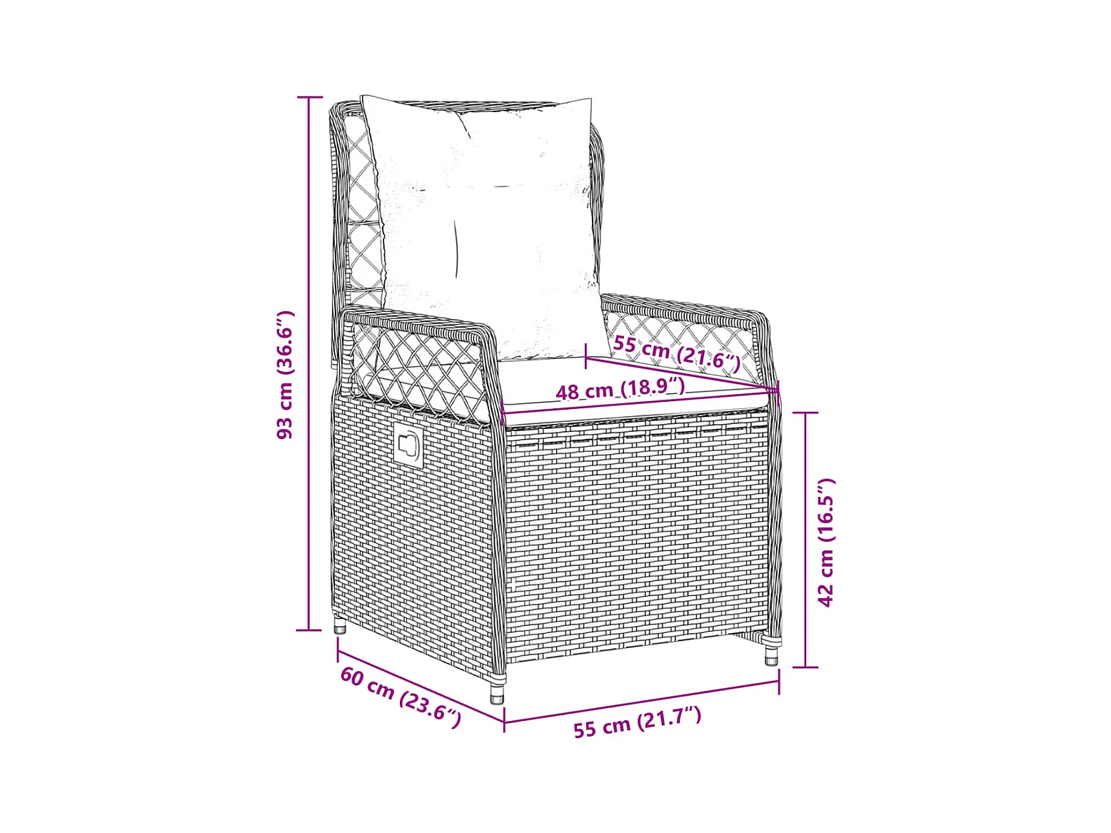 Tuinstoel verstelbaar met kussens poly rattan beige