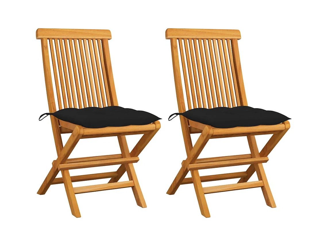 Tuinstoelen en zwarte kussens set van 2 Massief teakhout