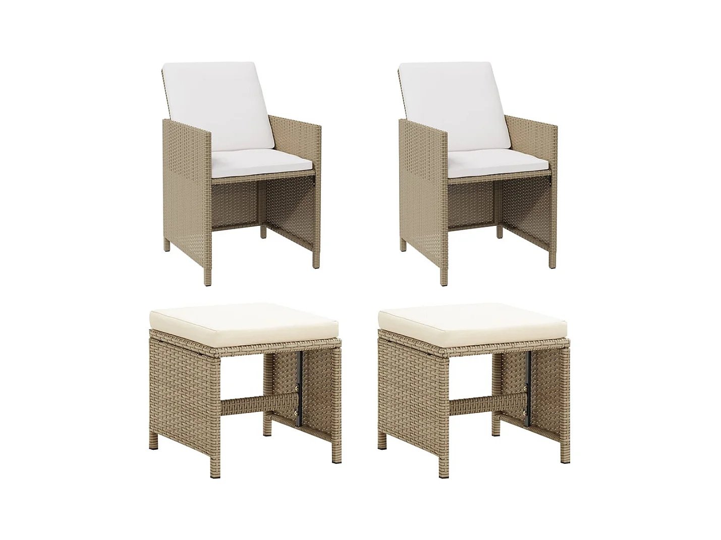 Tuinstoelen met krukken set van 2 Beige geweven hars