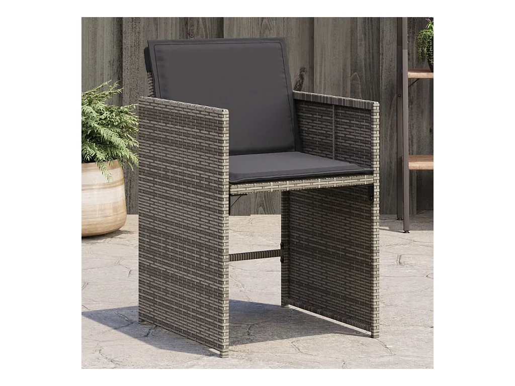 Tuinstoelen met kussens, set van 4, grijs, geweven hars