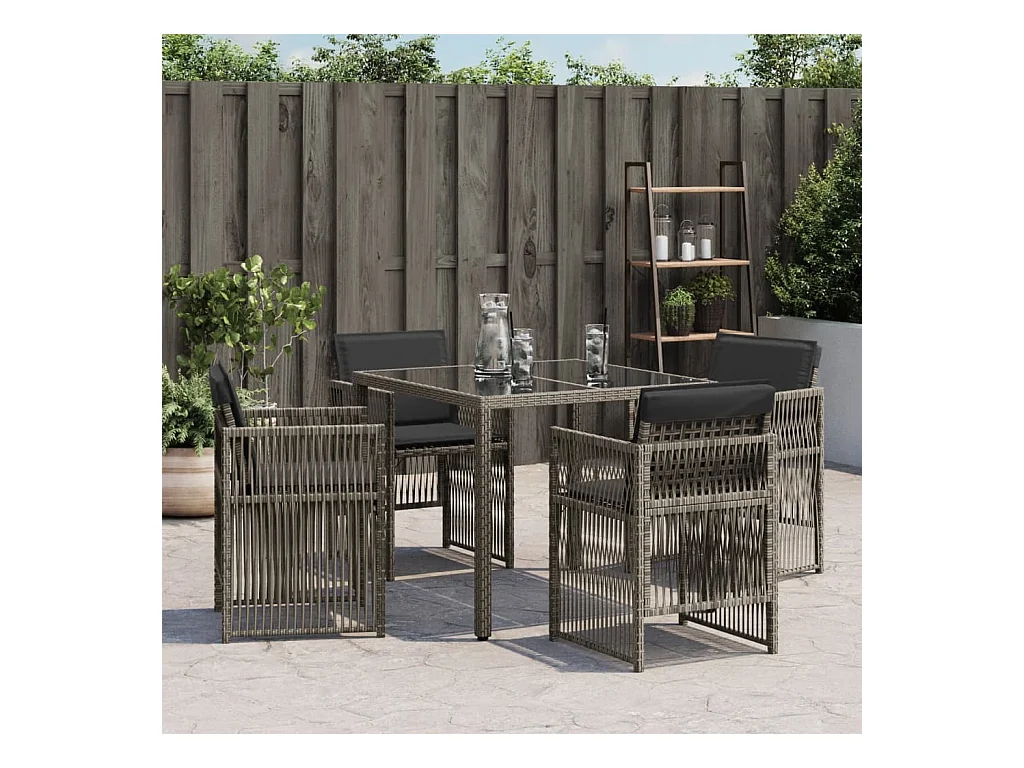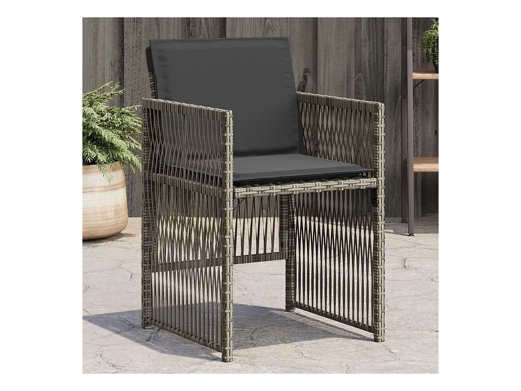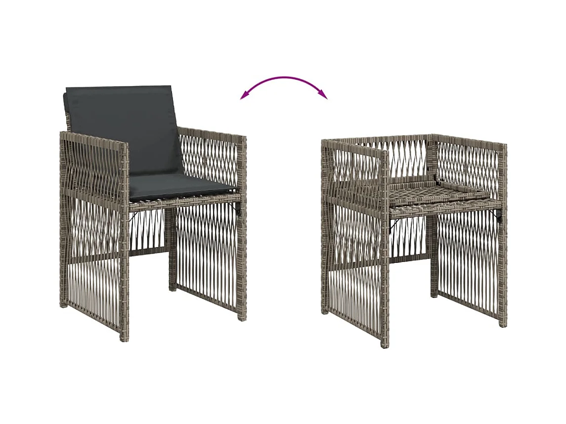 Tuinstoelen met kussens, set van 4, grijs, geweven hars