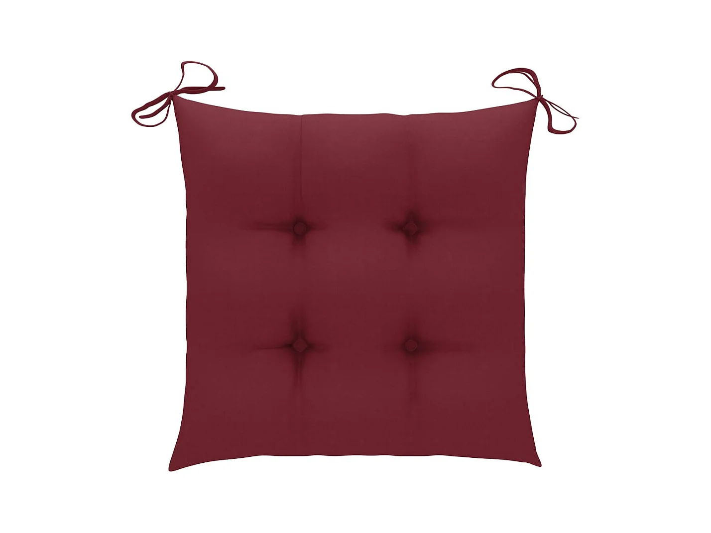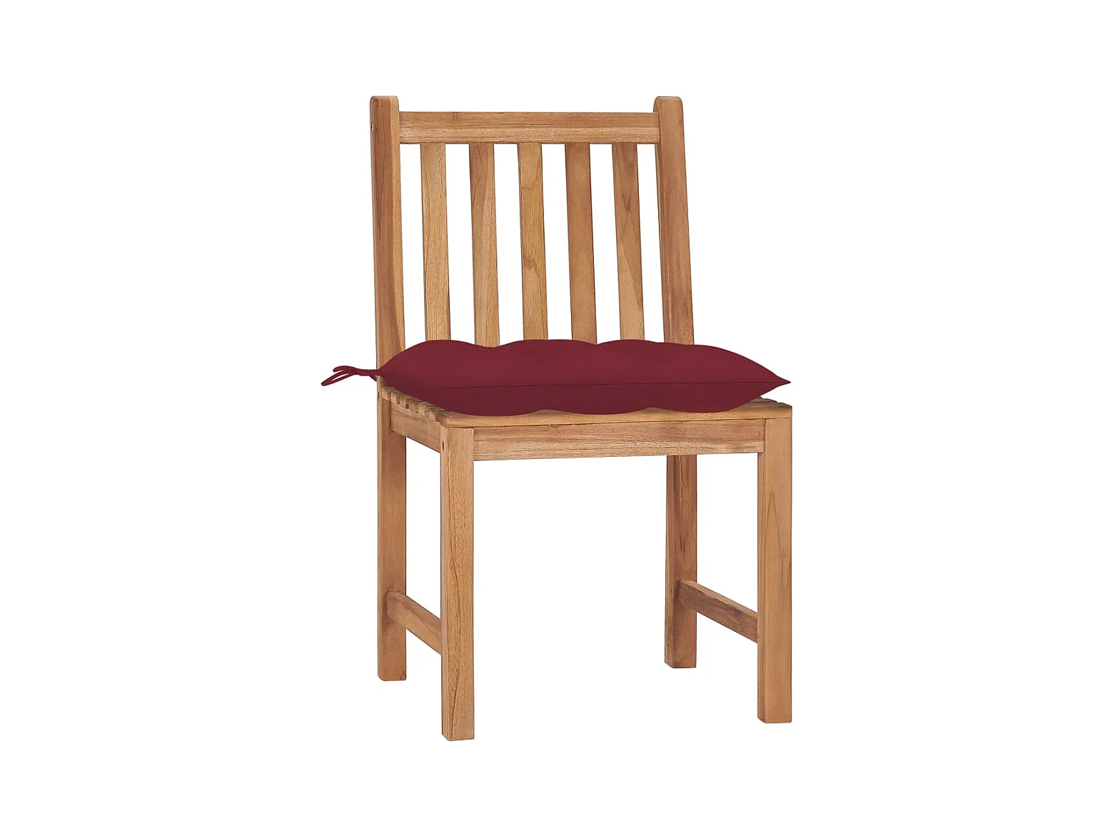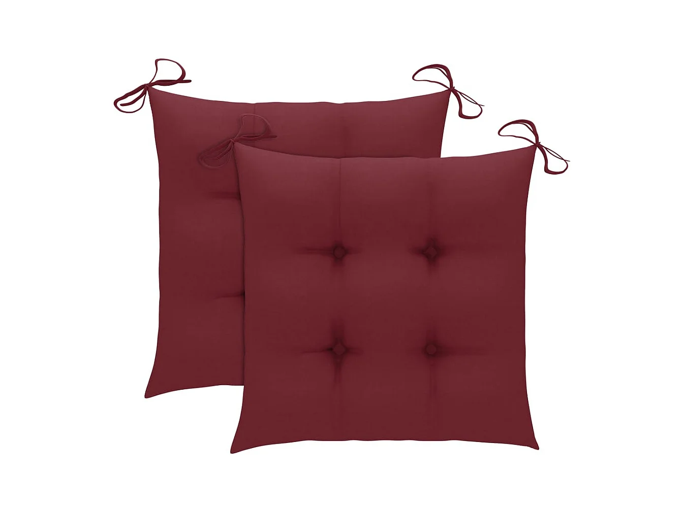Set van 2 tuinstoelen met bordeauxrode kussens, massief teakhout