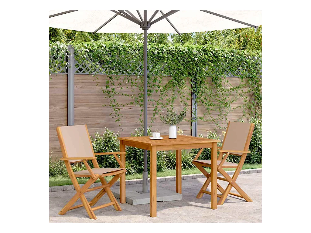 Tuinstoelen set van 2 taupe massief acaciahout en stof
