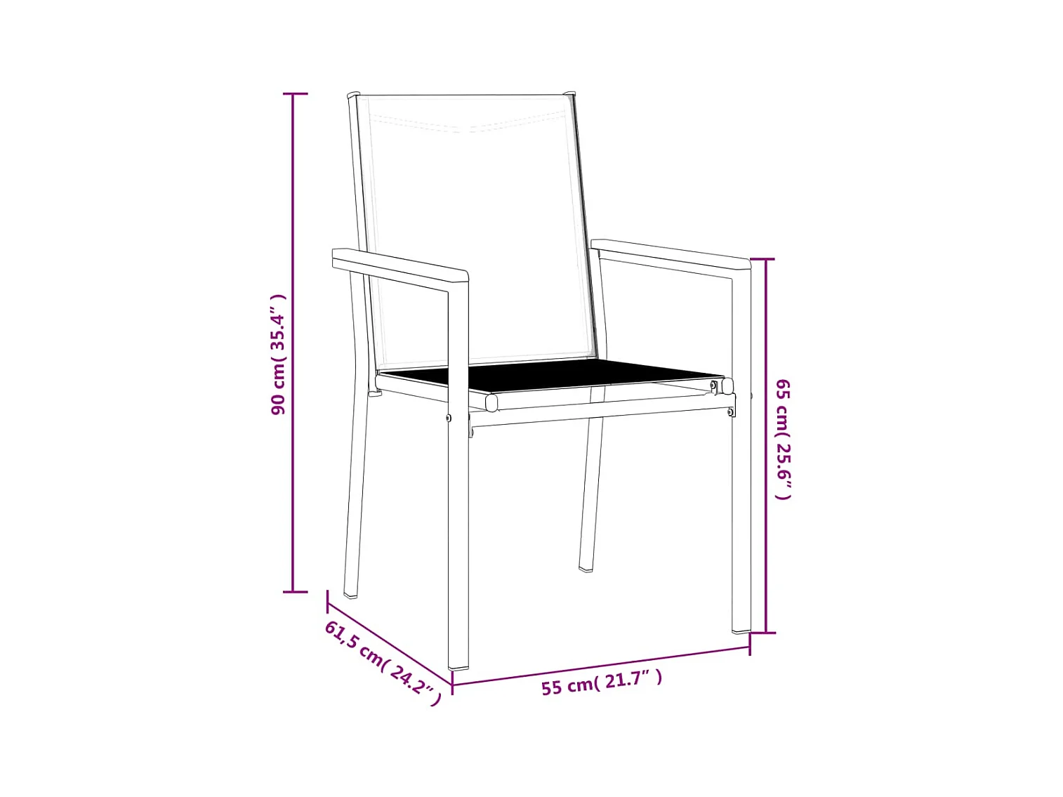 Tuinstoelen set van 2 zwart 55x61,5x90cm textiel en staal
