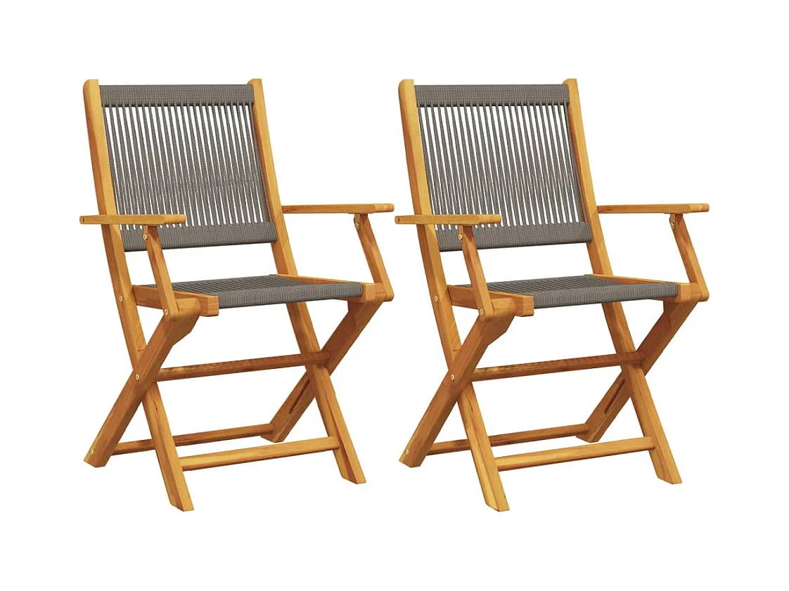 Tuinstoelenset van 2 grijs acaciahout en polypropyleen